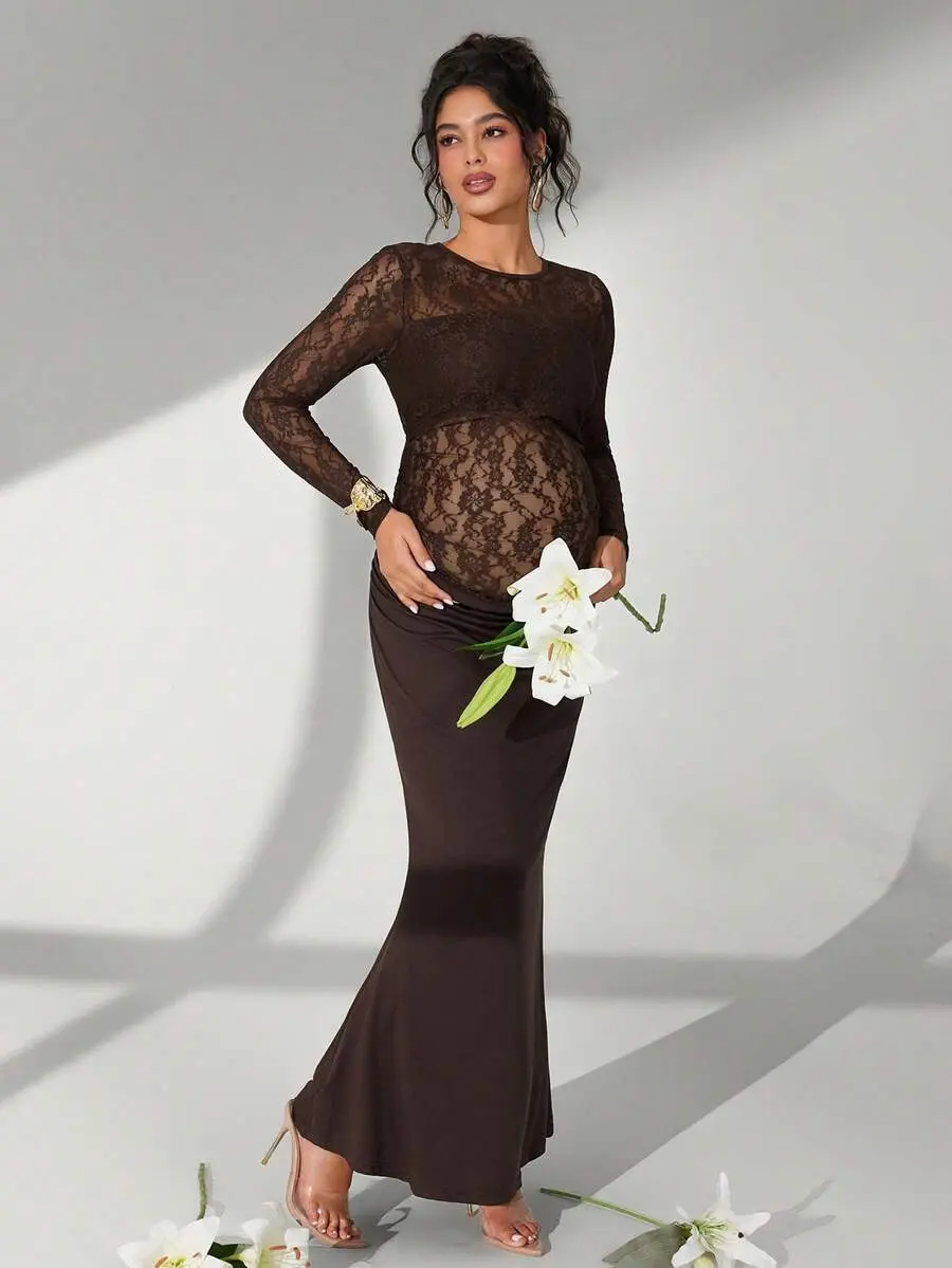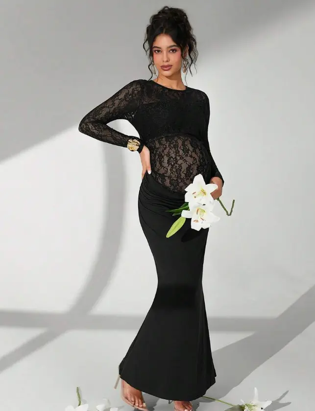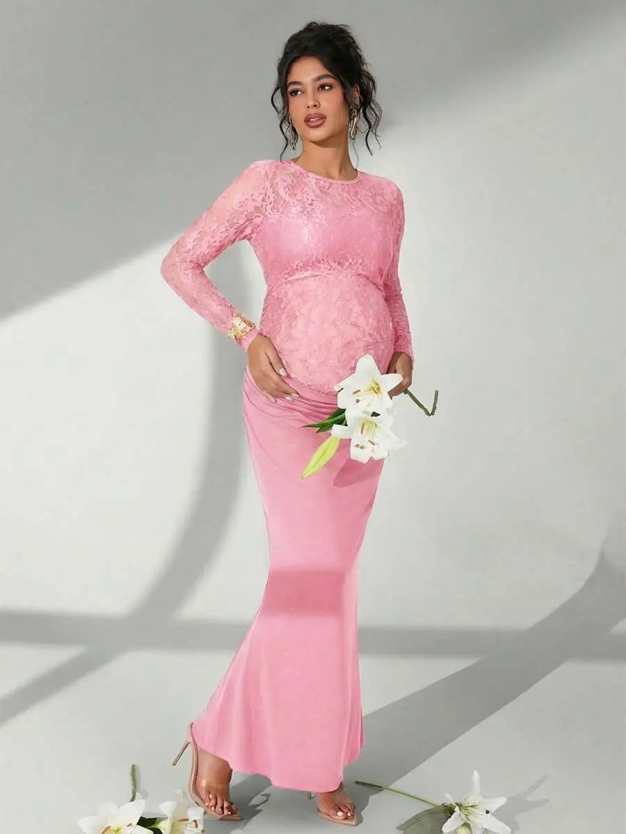 ELARA Maternity Dress Solid Color Lace Long Sleeve Ruffle Mermaid Photography #MomTok Viral
