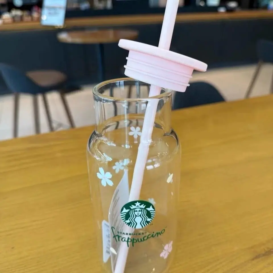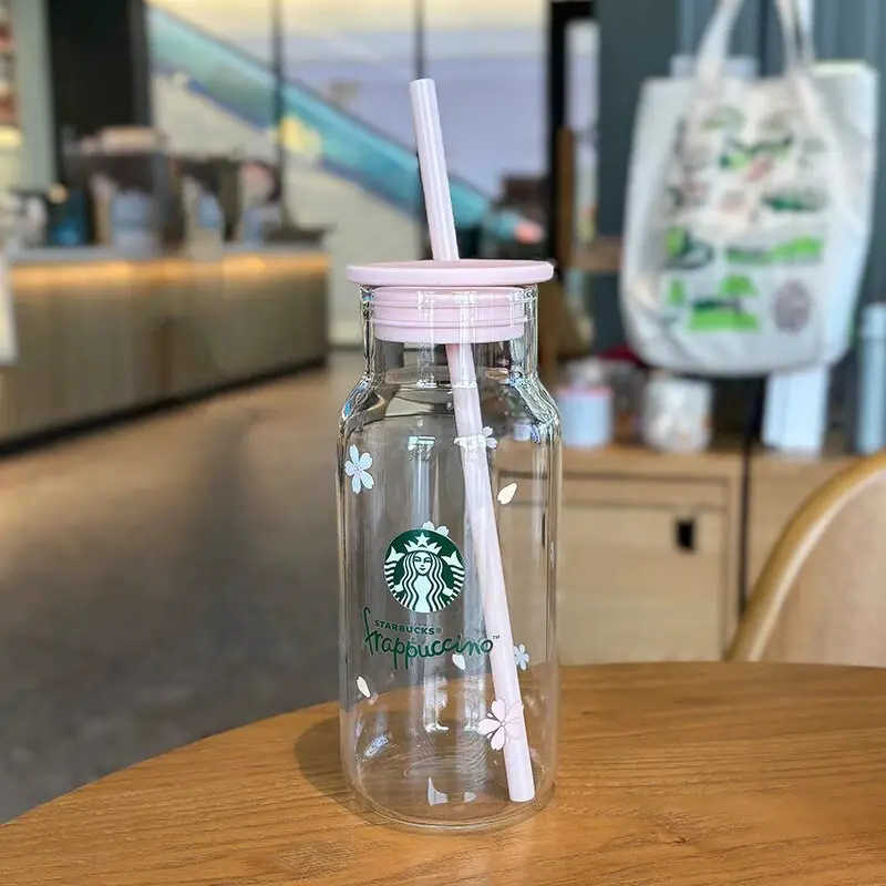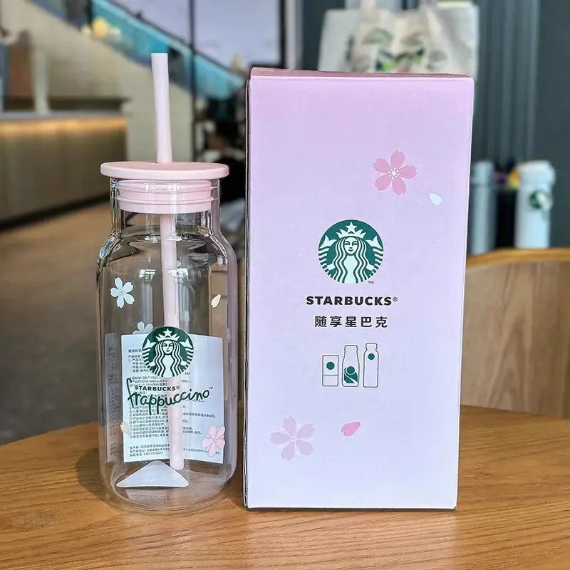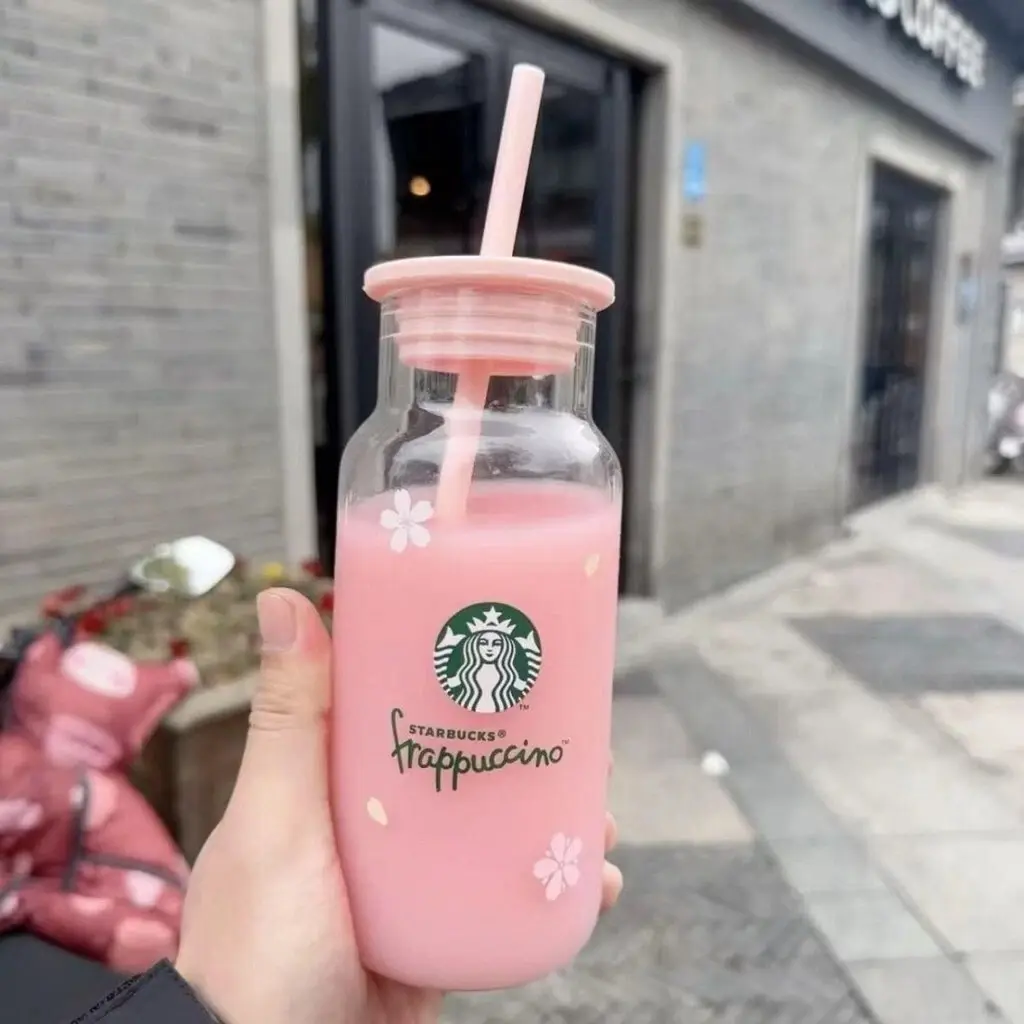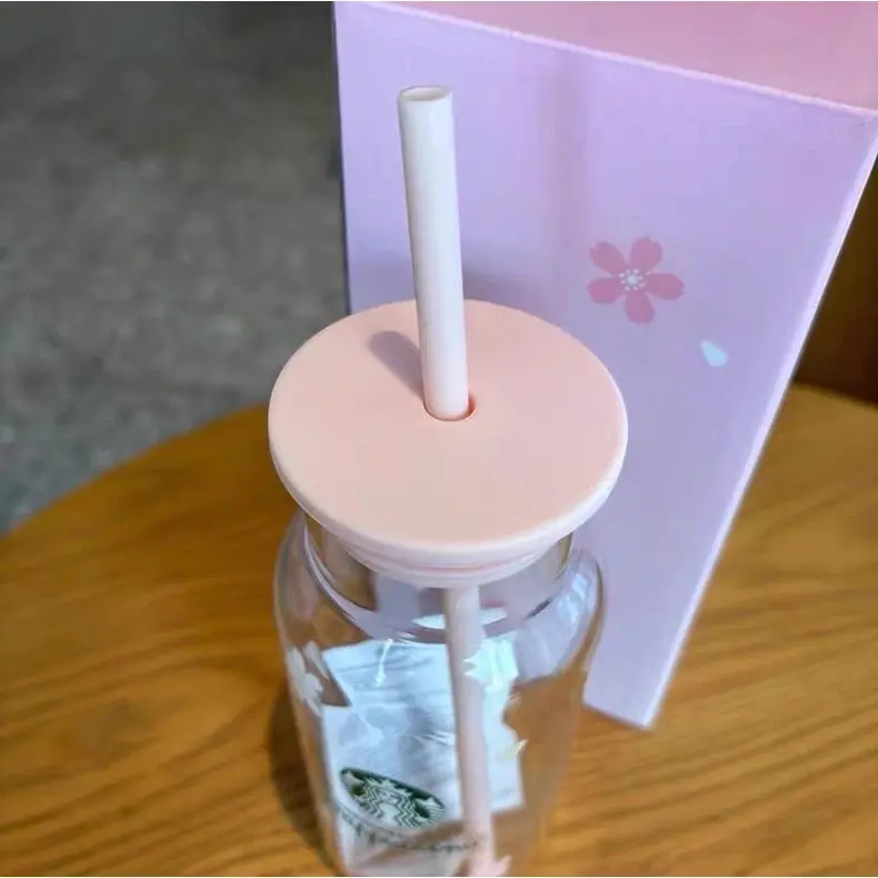Starbucks Overseas 500ml Pink Cherry Blossom Coffee Cup Shake Straw Cup Glass Milk Cups