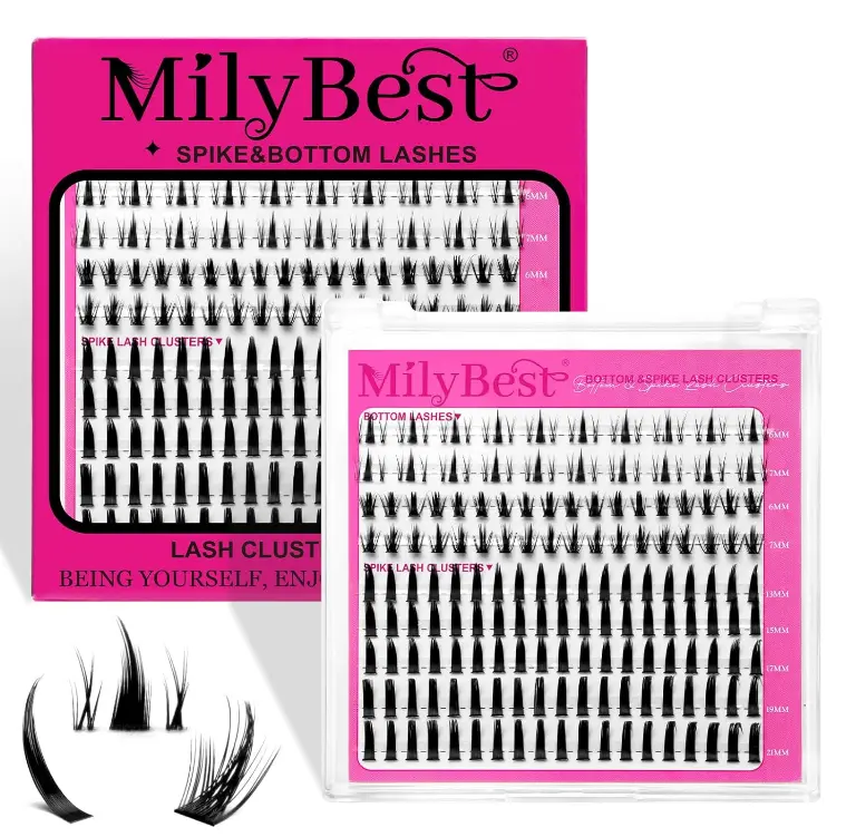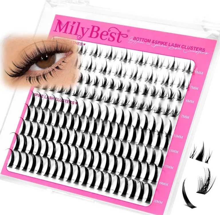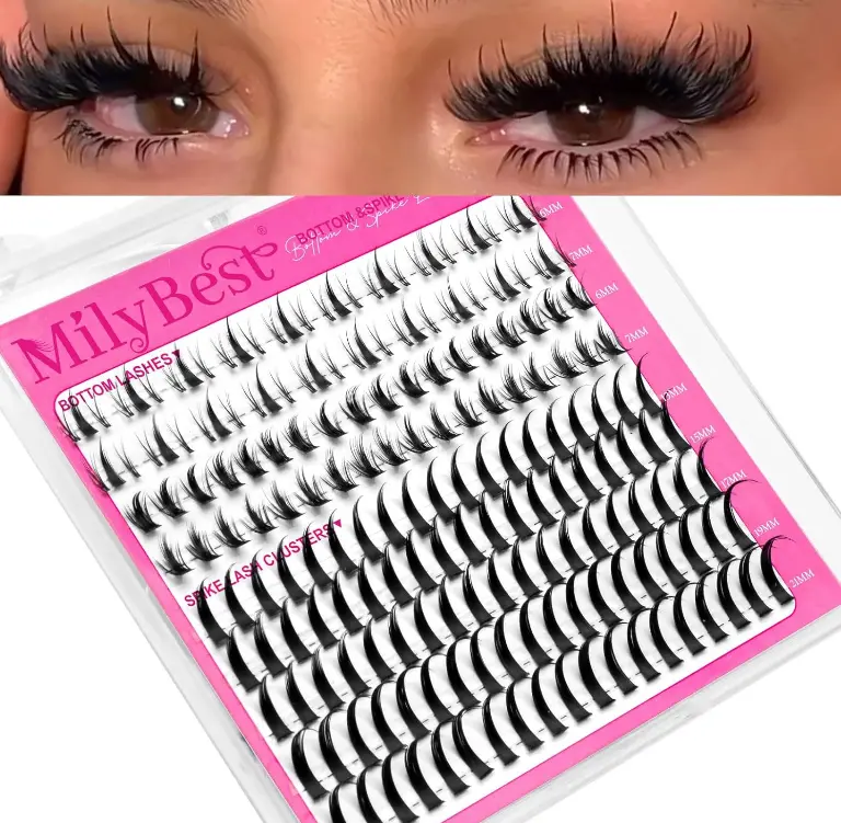 MilyBest Bottom Lash Clusters with Spikes 13-21mm Lash Spikes and 6-7mm Bottom Lashes Wispy Cluster Eyelash Extensions Spiky Lashes Clusters D Curl Eyelash Clusters Manga DIY Individual Eyelashes