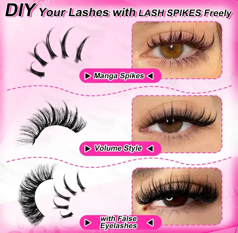 Endlessly Customizable to Match Any Eyelash Style: Our spiky lashes and bottom clusters are the perfect partners for all your false eyelashes. Achieve different makeup styles by mixing and matching: combine short lengths with natural or manga lashes; use long spikes for mega volume styles; or apply individual clusters with strip lashes for a unique, attractive look. Adapt your style to suit every mood and occasion