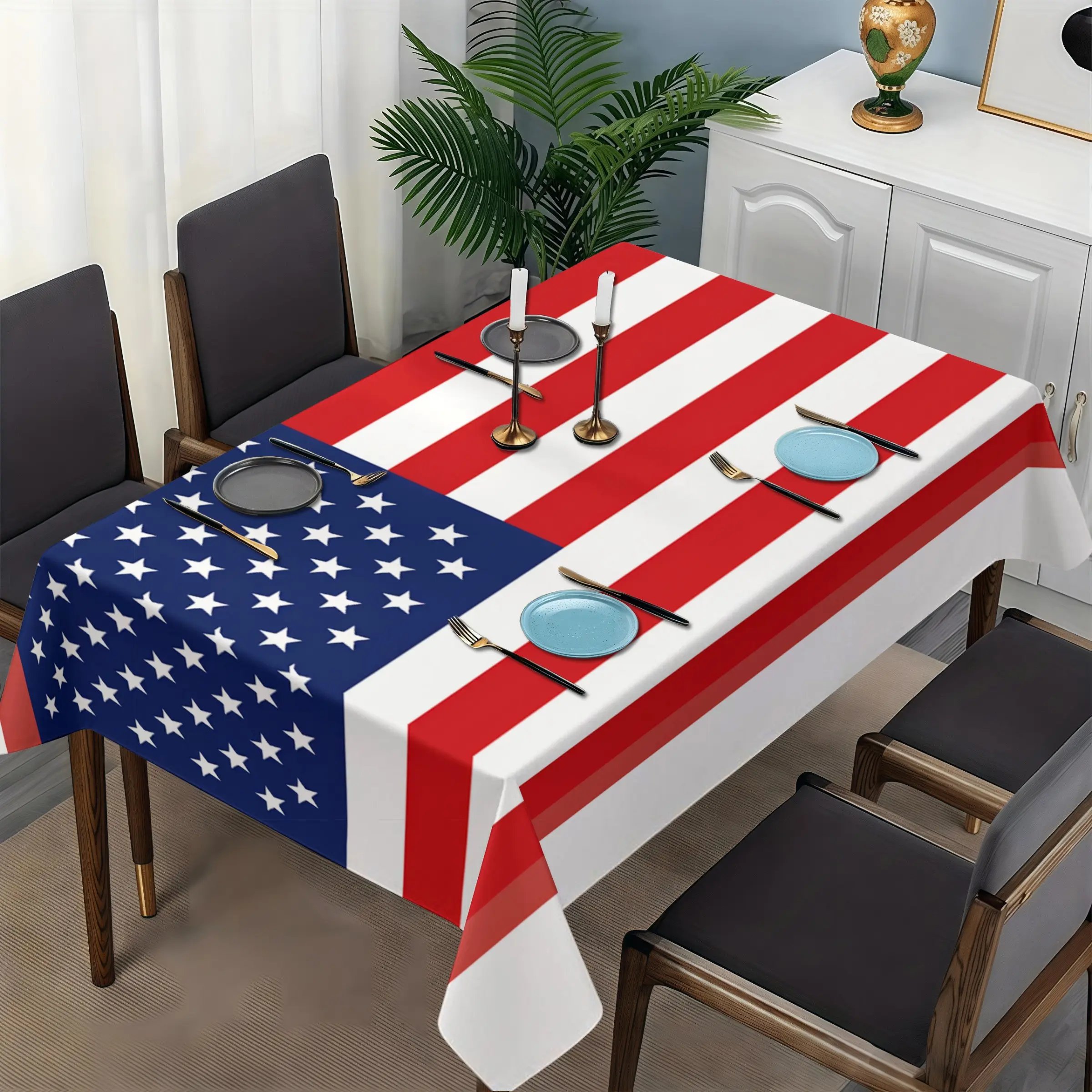 American Flag Pattern Rectangular Tablecloth, Polyester Material, Multiple Specifications Available, Multi - Color, Easy to Clean, Suitable for Daily, Festival & Anniversary Use, Creates Cozy Festive Atmosphere in Dining Room