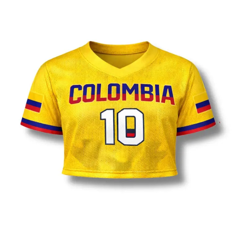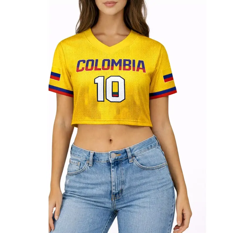 Colombia Soccer Crop Top Jersey Custom Name Number Women Mesh Football Fan Shirt