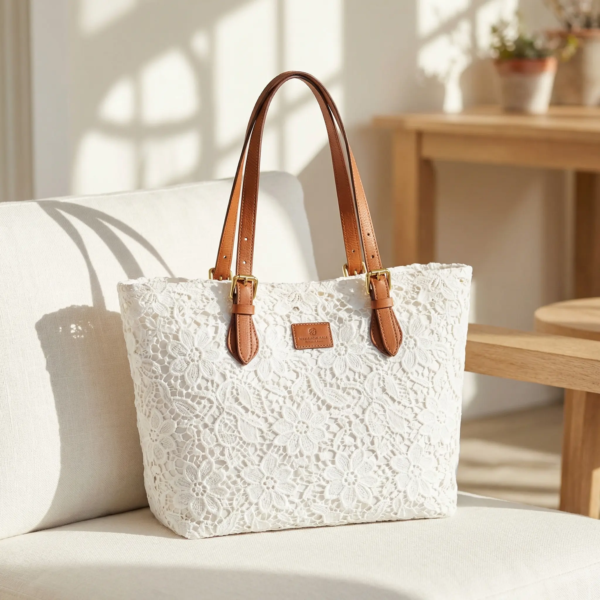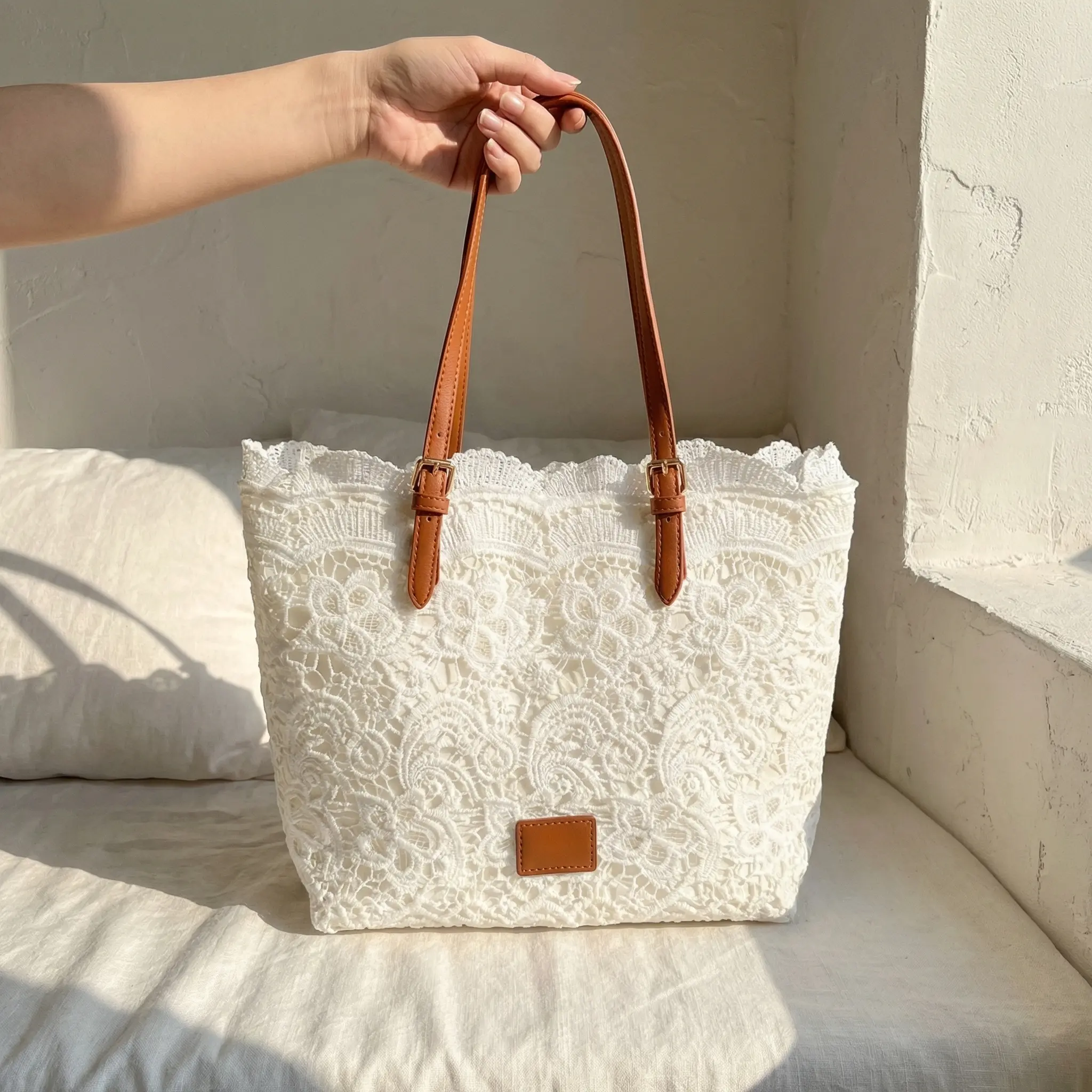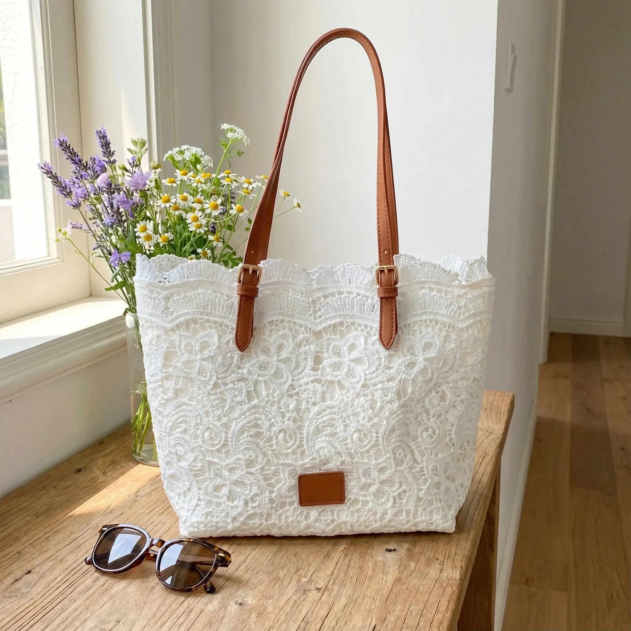 Step into the world of effortless elegance with our Lace Aesthetic Tote Bag. Featuring intricate floral crochet detailing and a soft, breathable mesh design, this bag is the ultimate accessory for those who love a romantic, vintage-inspired look. The spacious interior is designed to hold your laptop, notebooks, and daily essentials, while the sturdy leather-style straps ensure a comfortable carry from morning coffee to evening strolls. Lightweight and charming, it’s the ideal blend of high-aesthetic style and everyday functionality.