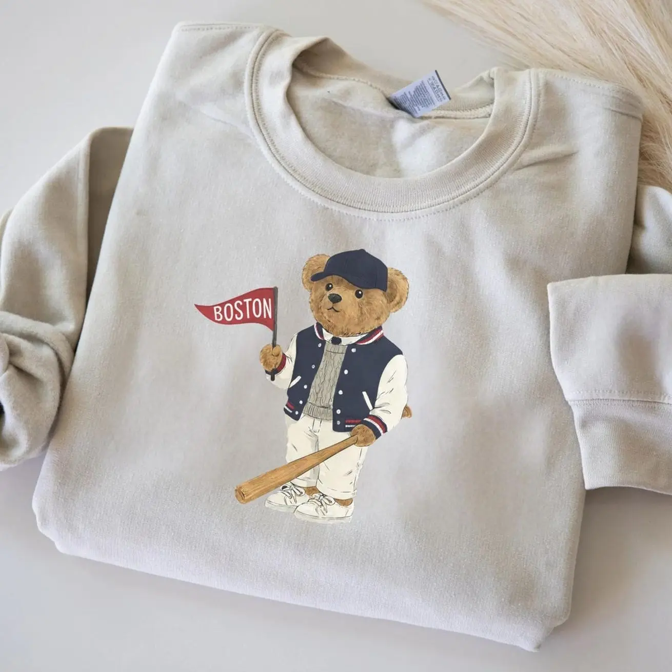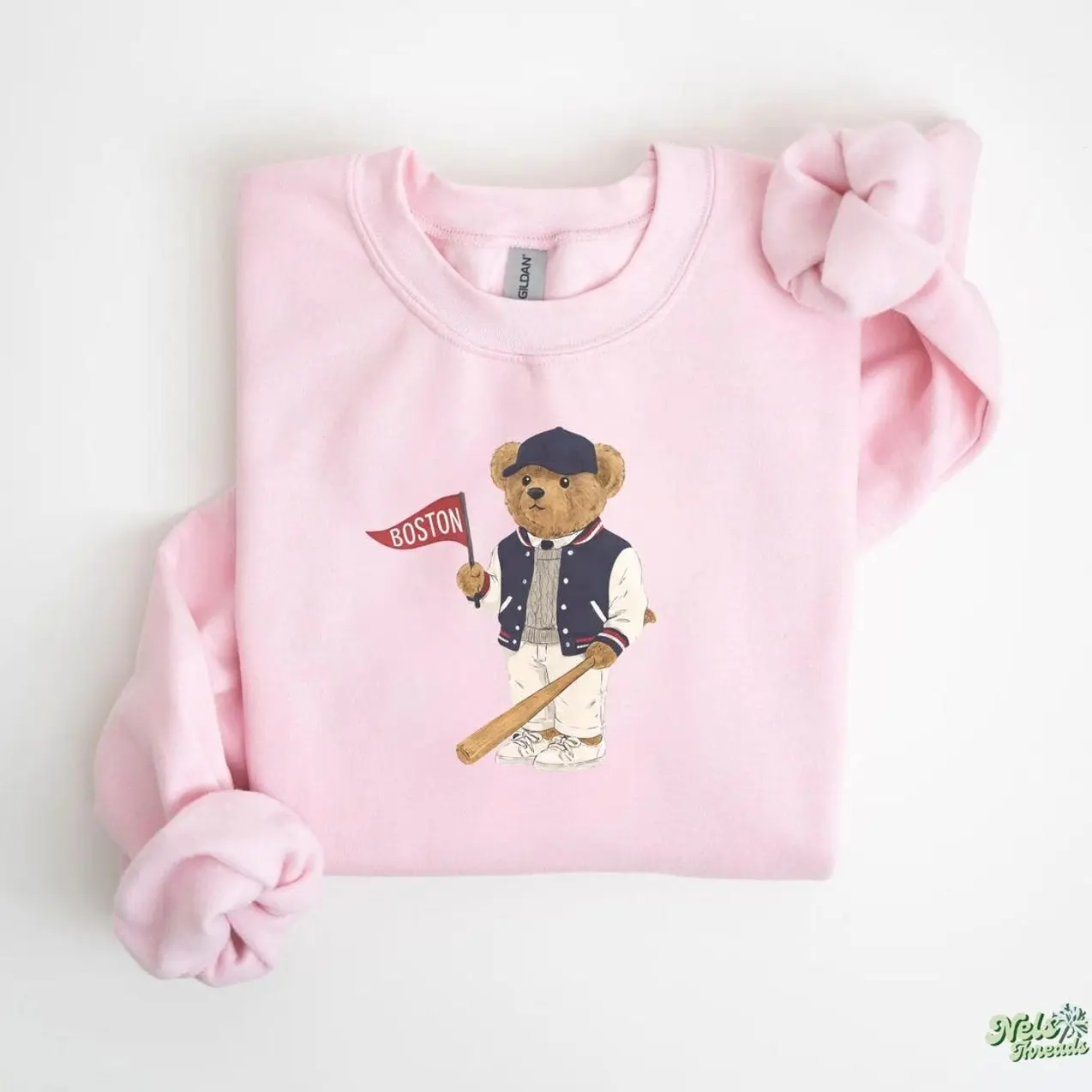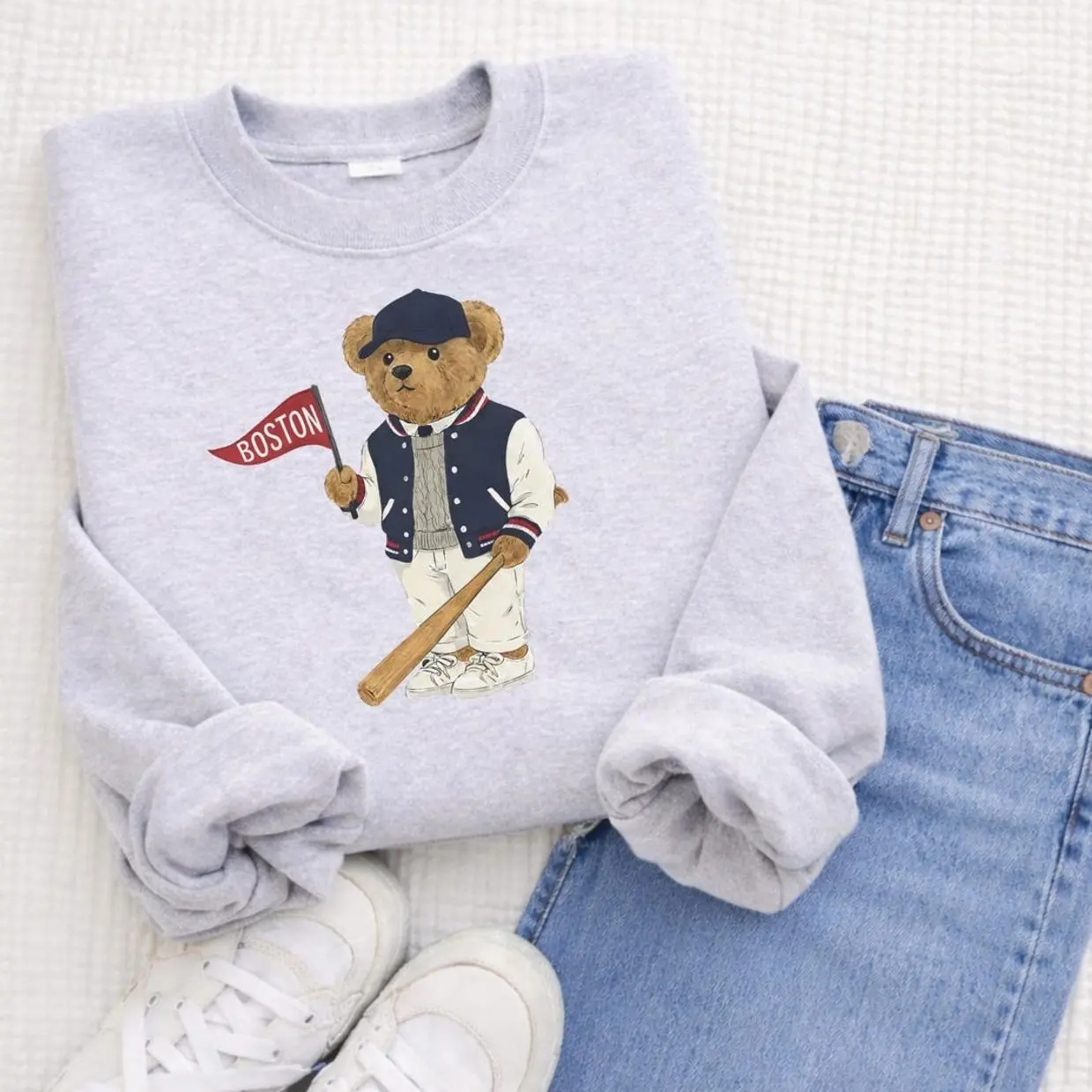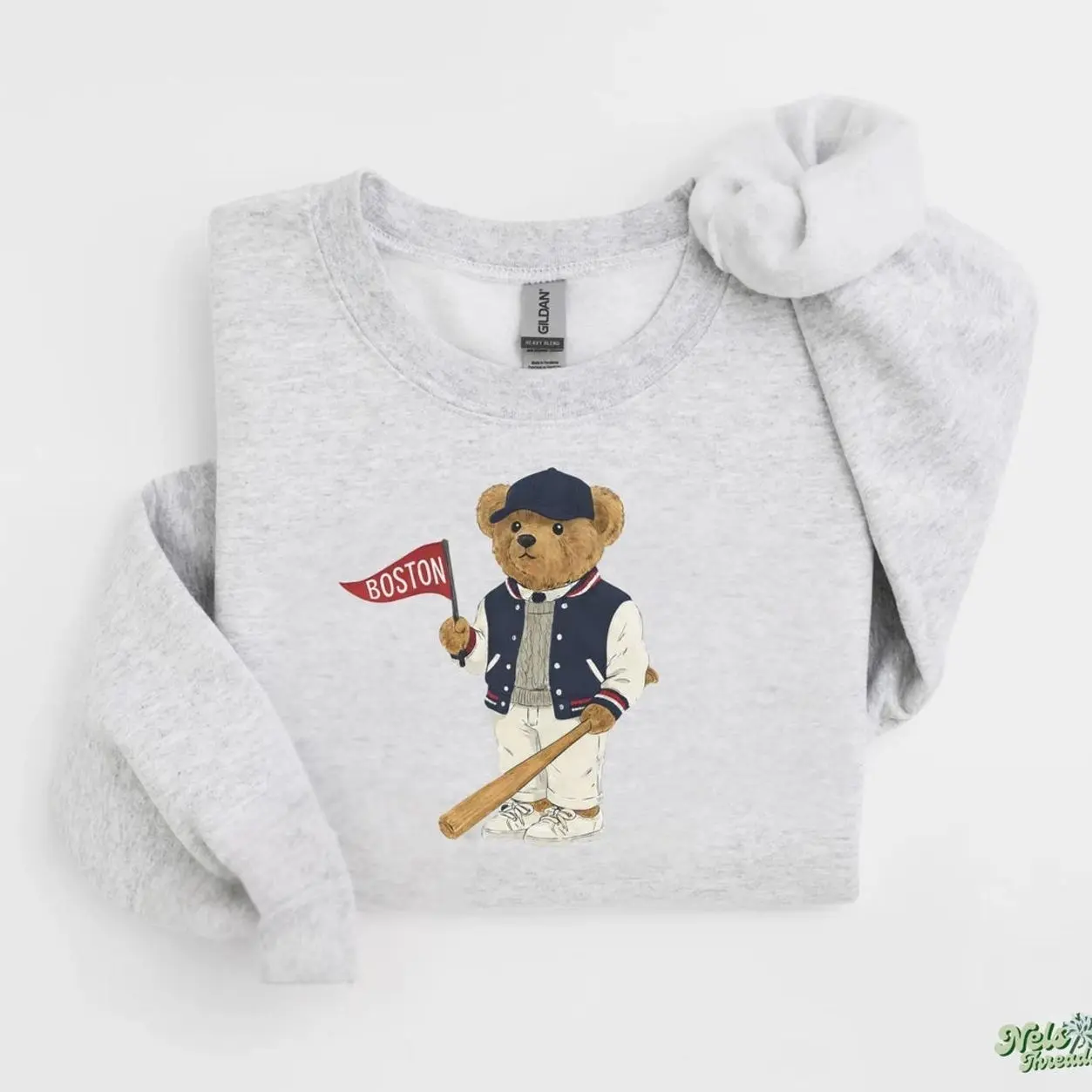 Boston Baseball Graphic Sweatshirt, Blue And Red City Pride Game Day Sweatshirts