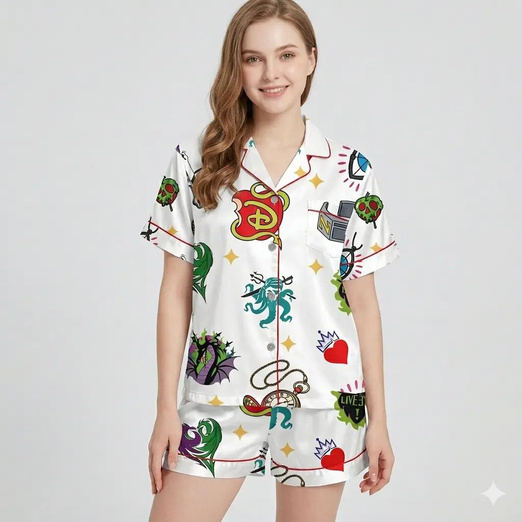 Zombies Inspired Satin Pajamas, Descendants World Tour Silk Sleepwear Outfit for Girls Birthday Gift