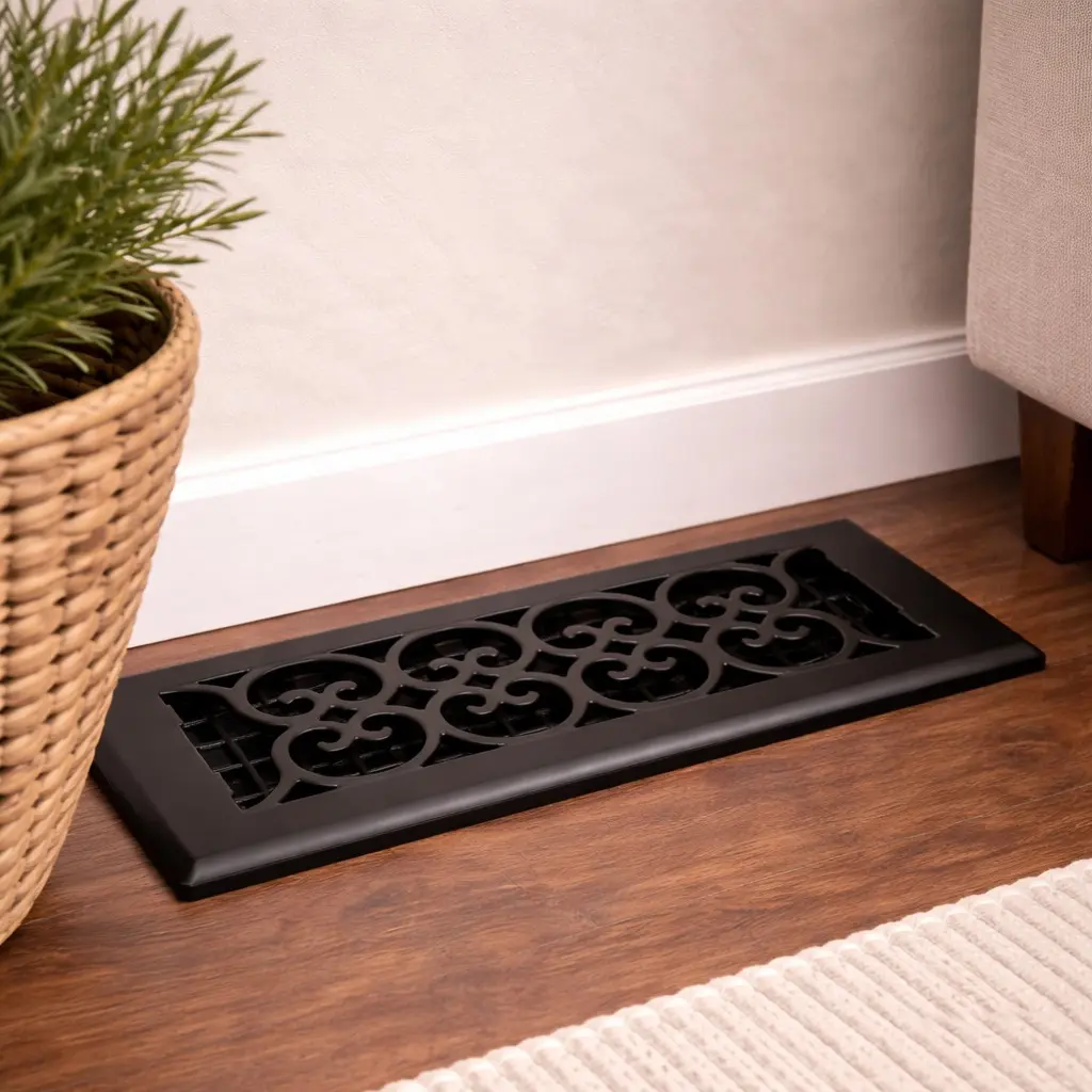 Upgrade your home with the Decor Grates 4" x 10" Steel Floor Register, designed to combine durability, functionality, and timeless style. Featuring a rich oil rubbed bronze finish and a decorative design, this vent cover enhances any interior while ensuring smooth and efficient airflow.