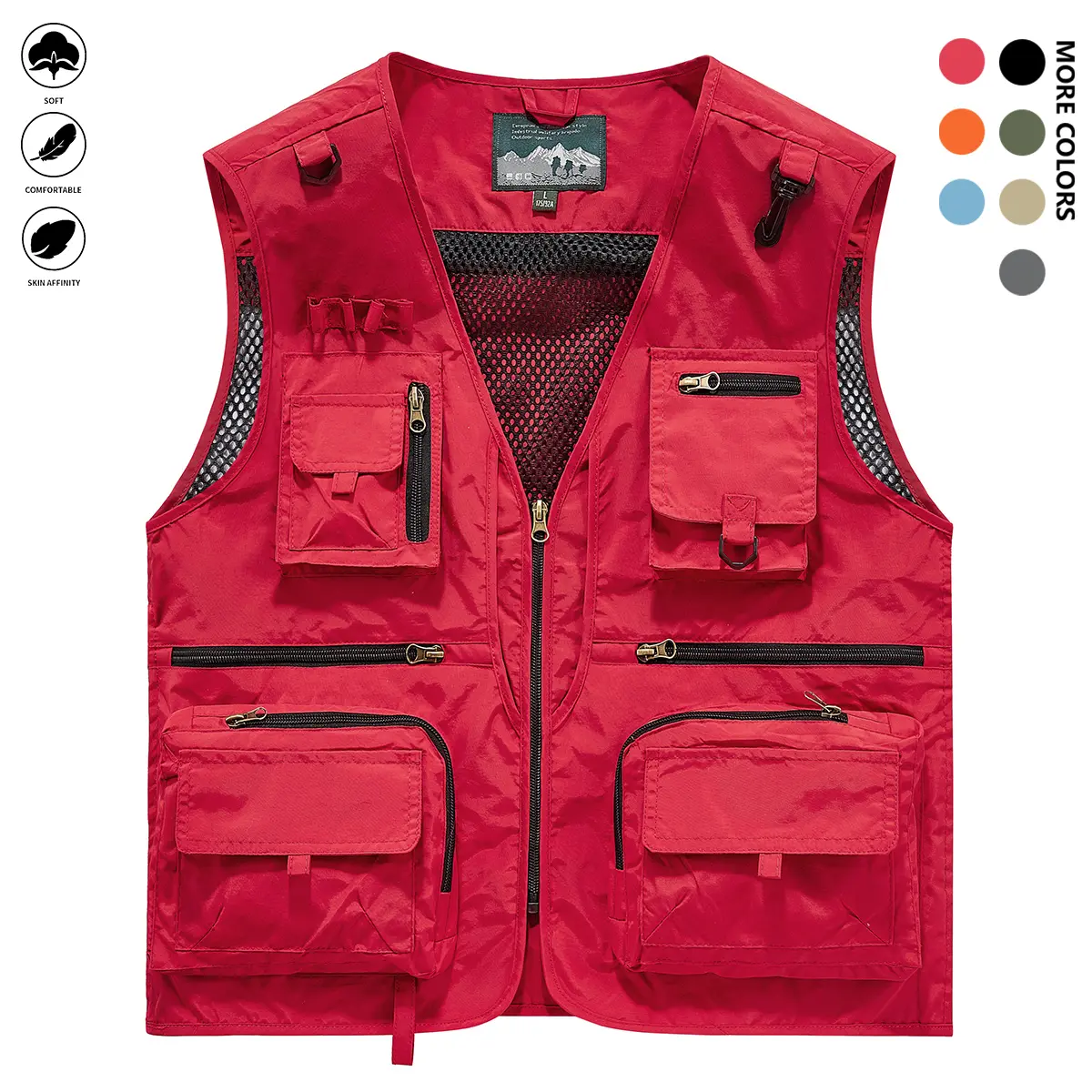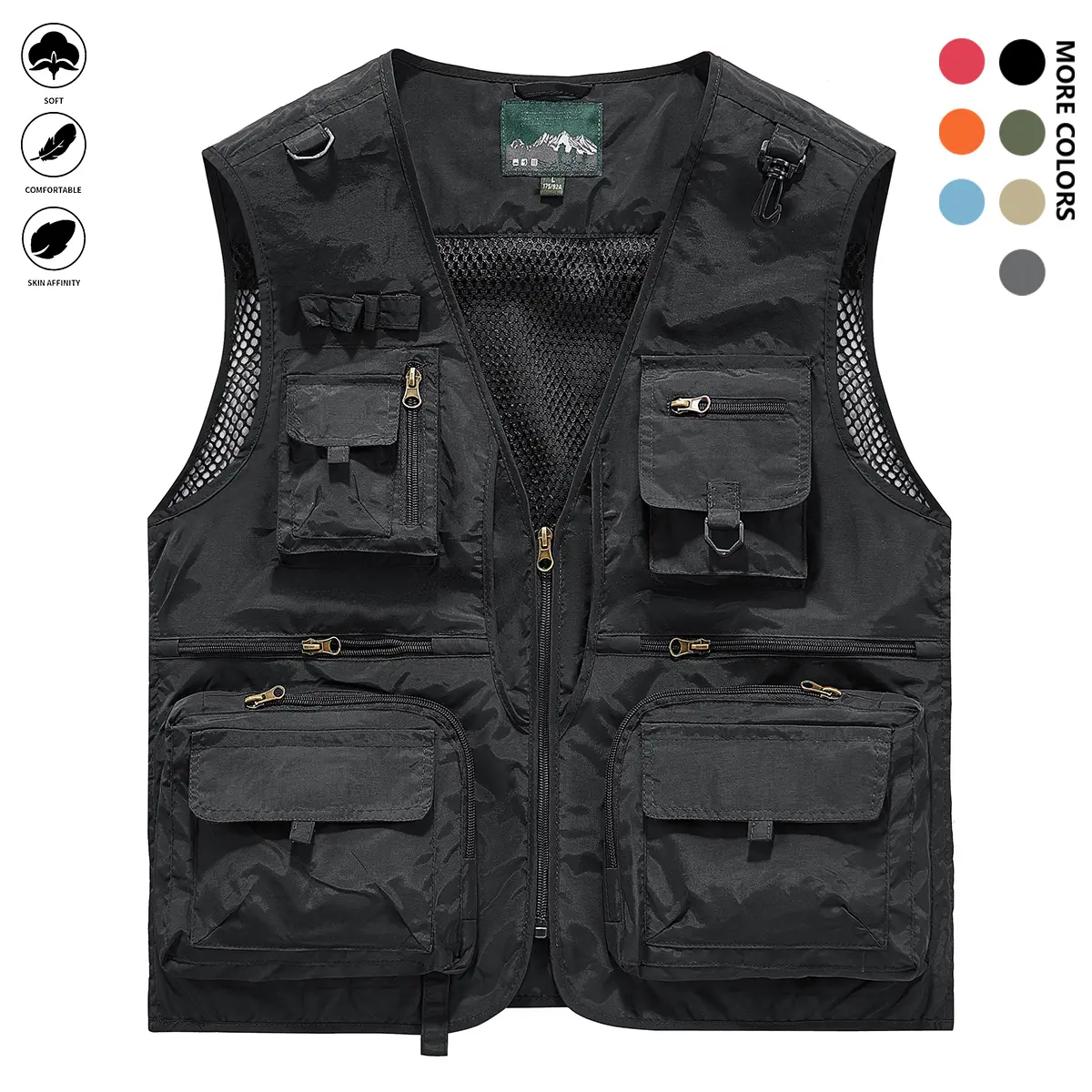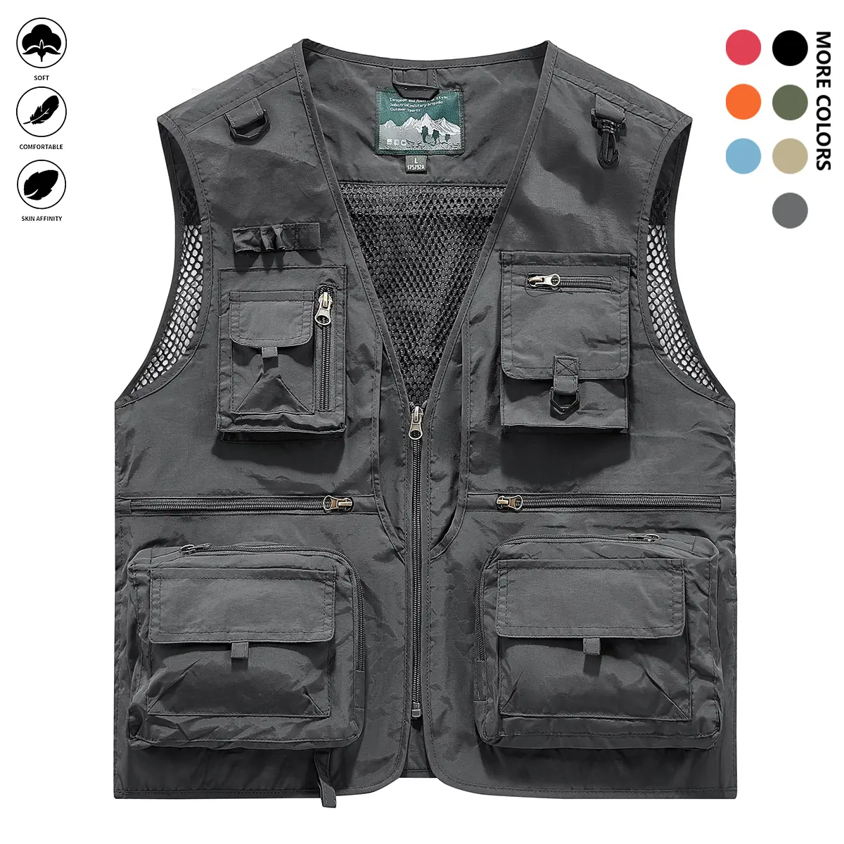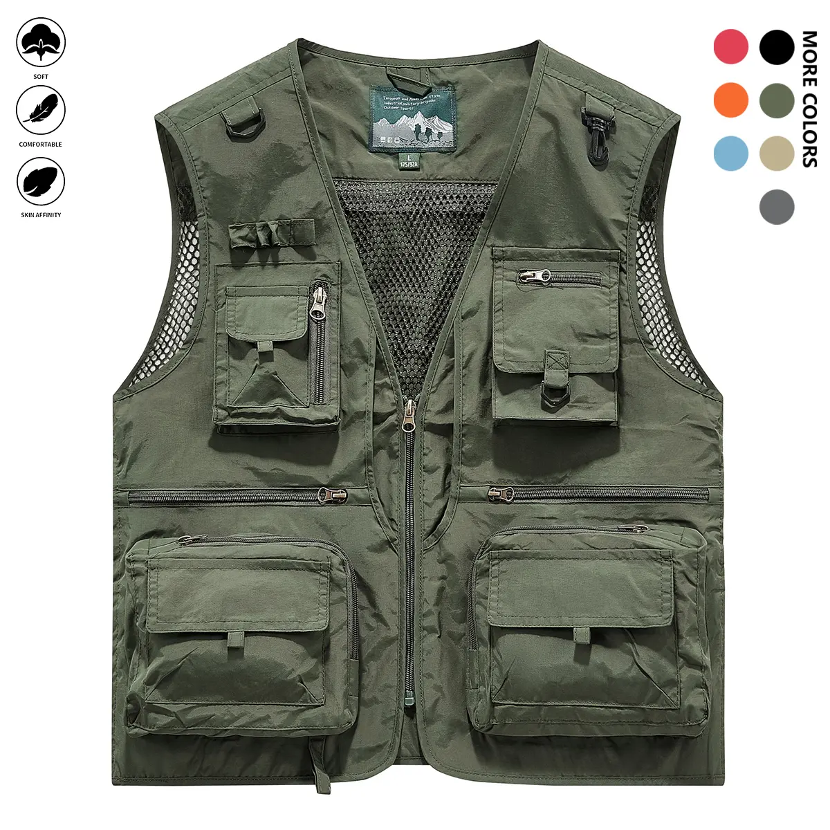 Men's Solid Color Lightweight All-Season Deep Cargo Vest Jacket with Multi-Pocket Outdoor Workwear for Fishing, Safari, Travel & Zippered Door Panels - Machine Washable (Vest & Jacket can be worn separately or together)