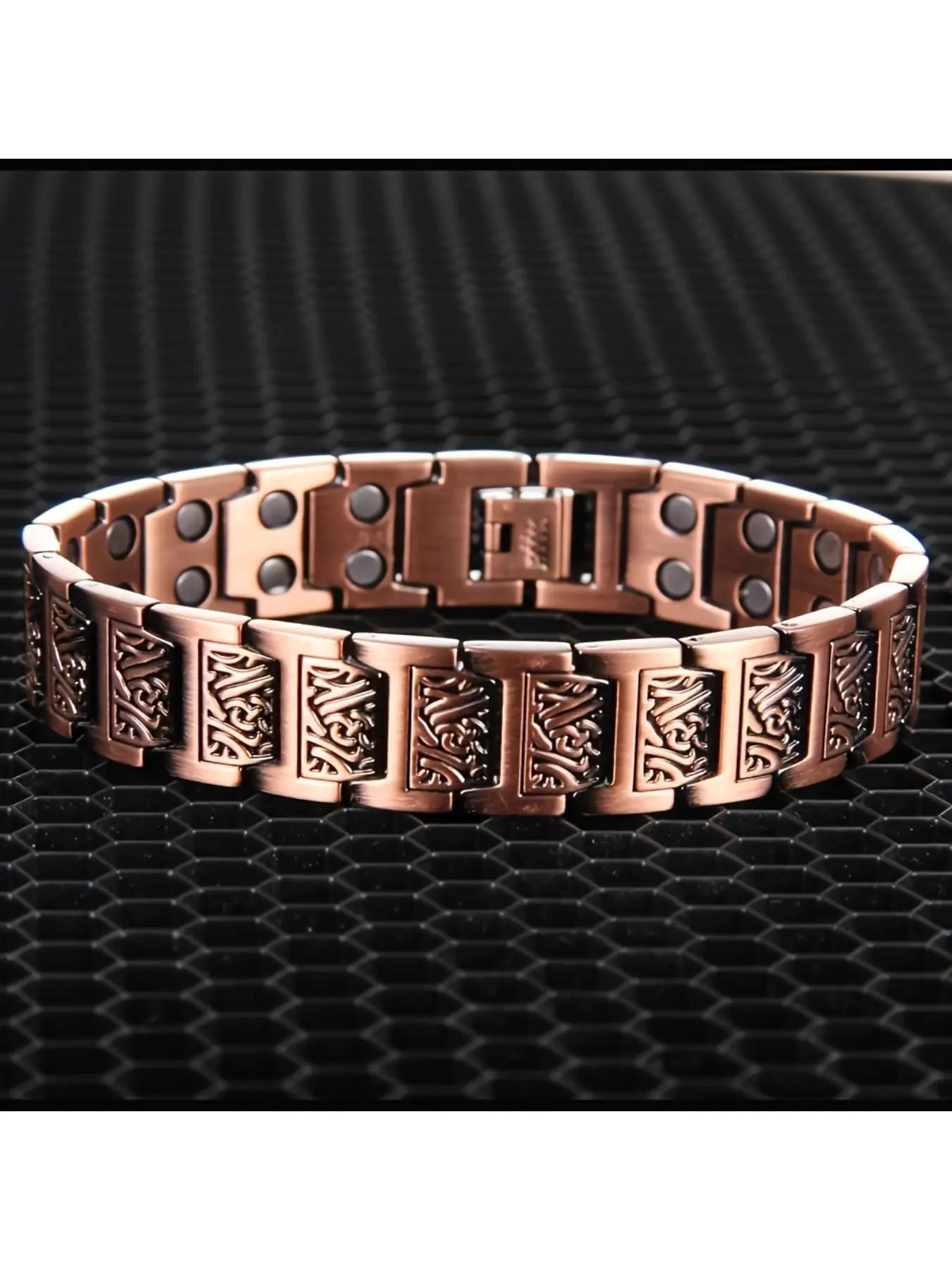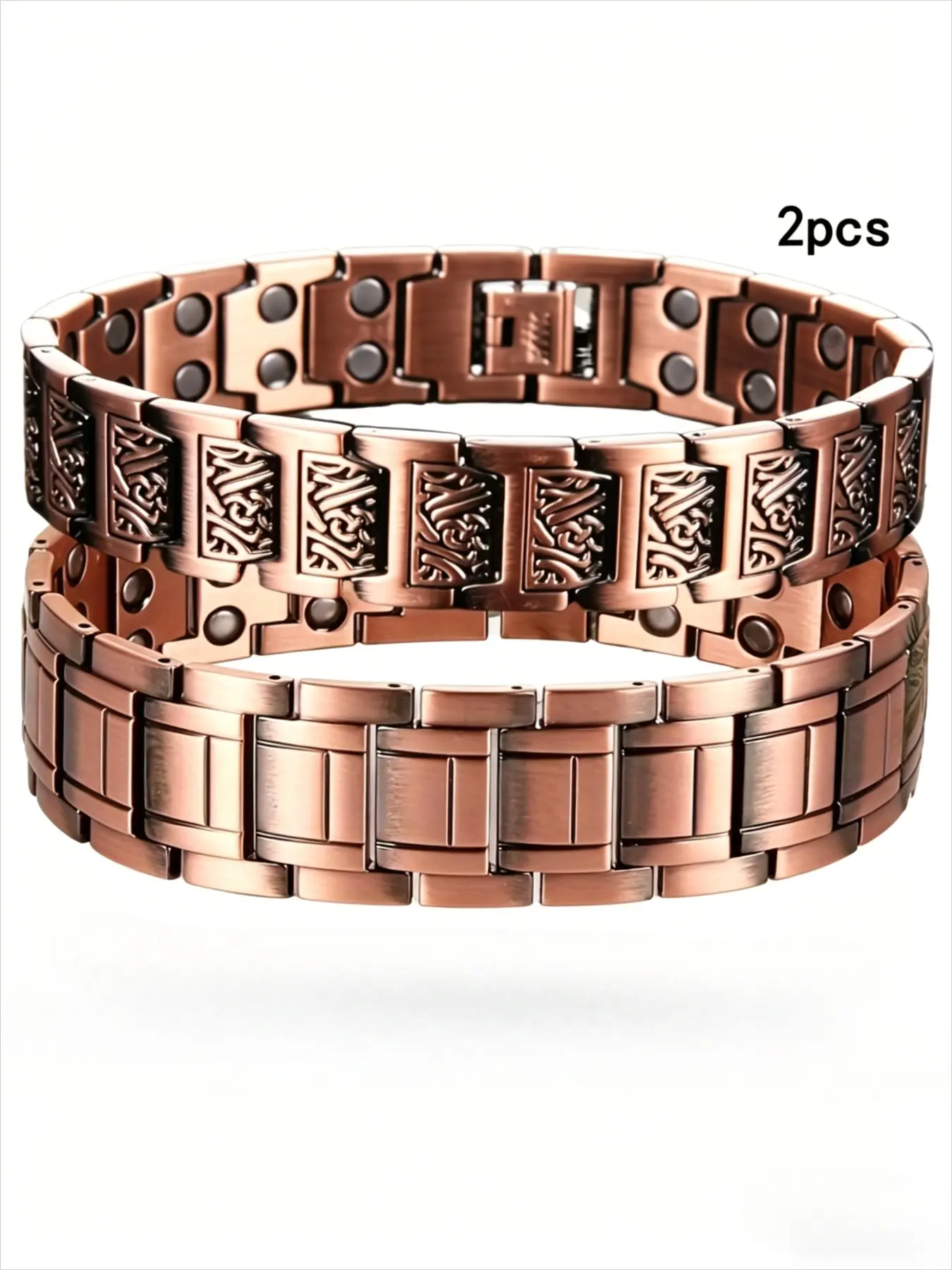 Men's Magnetic Bracelet - 3500 Gauss 3X Magnet, Adjustable Copper Belt Size Tool, 2 Styles (Interlocking/Smooth), Strong Magnetic Field Joint Protection, Ideal Father's Day Gift
