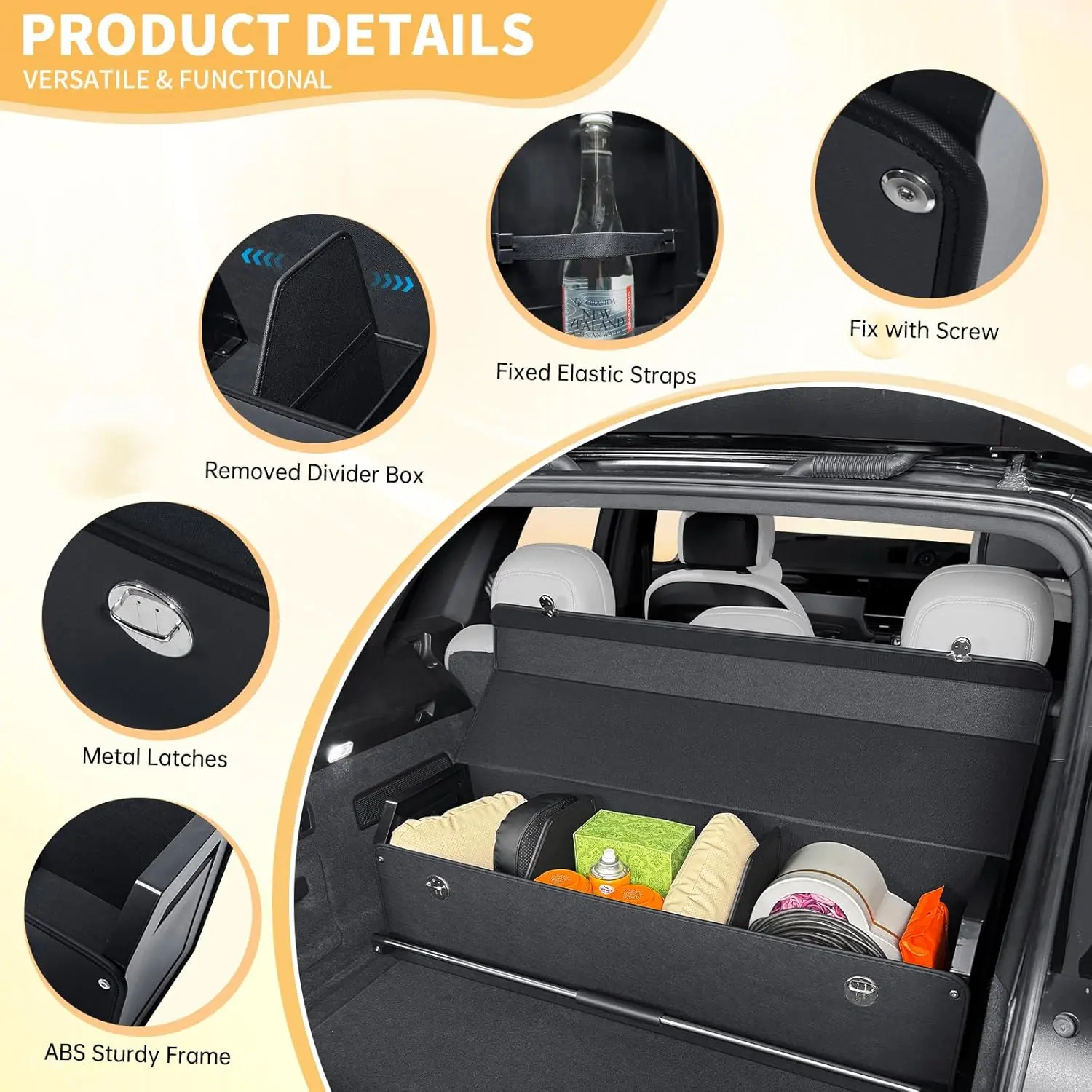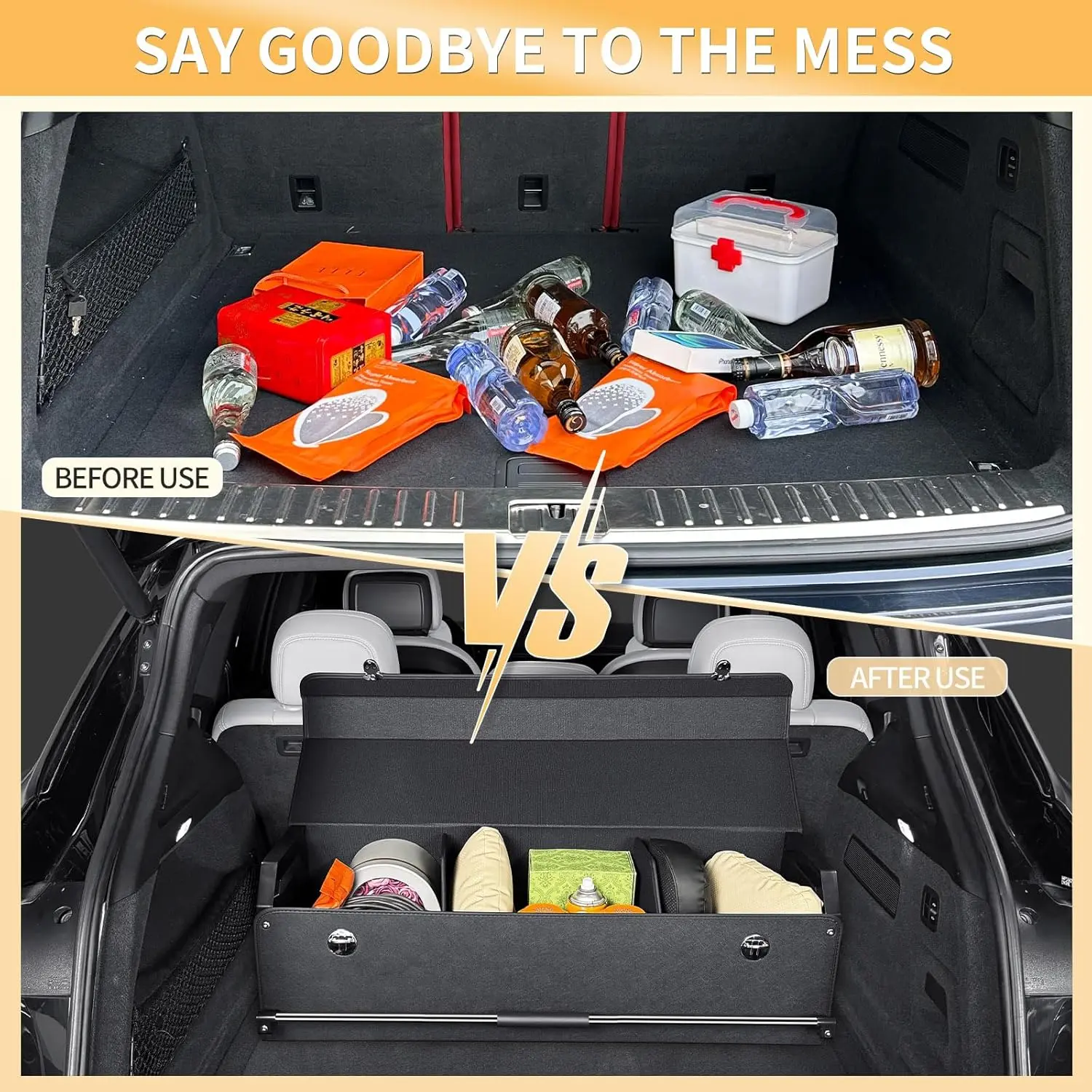 ·【Sturdiness】This trunk organizer for suv features a robust construction that ensures long-lasting performance. It’s solid base provides stability can withstand wear and tear of vehicle use. The sturdy ABS frames and fixed elastic straps keep your items securely in place, preventing them from shifting or getting damaged while on the move.