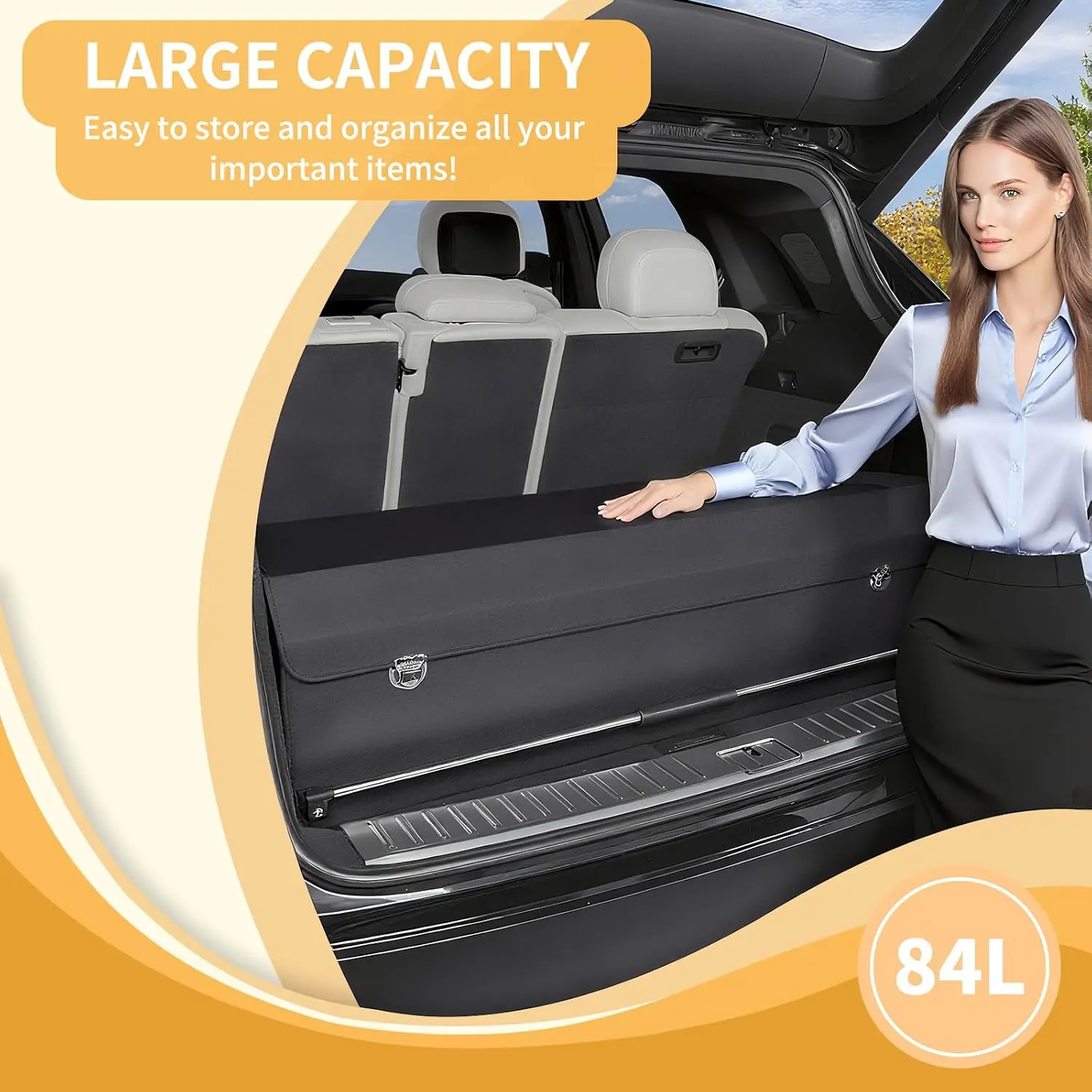 ·【Large Capacity】The car trunk organizer with lid measures 37"W x 11.42"D x 12.20"H and has a extra large capacity. It adapts to your specific storage needs and saves trunk space when not in use. Maintain a tidy and well-organized car trunk throughout all your journeys.