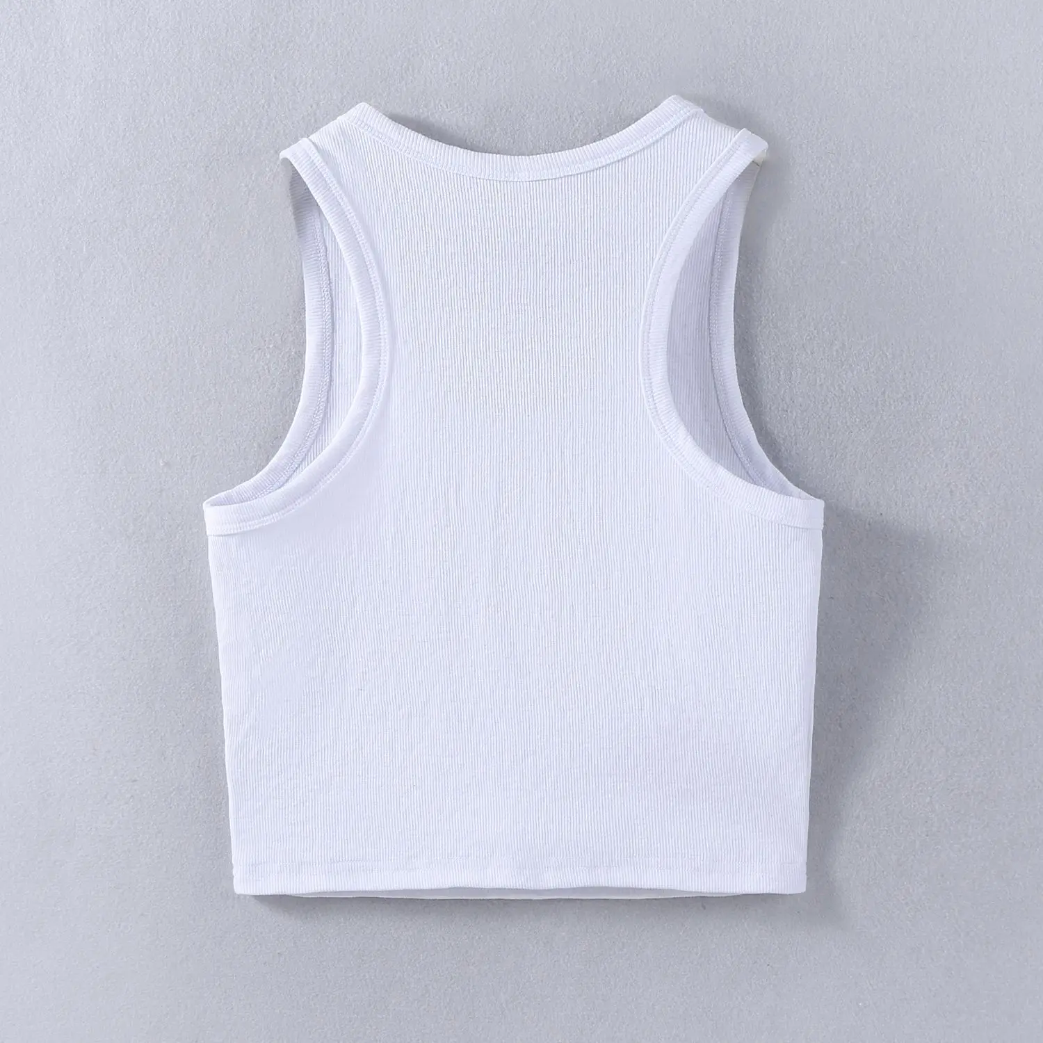 Y2K White Ribbed Knit Tank Top, Sleeveless Basic Crop Cami, Slim Fit Stretch Casual Streetwear, Versatile Summer Layering Essential for Women