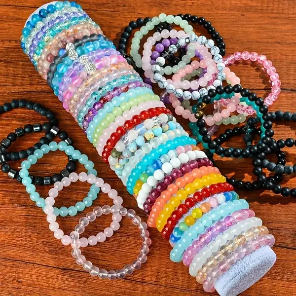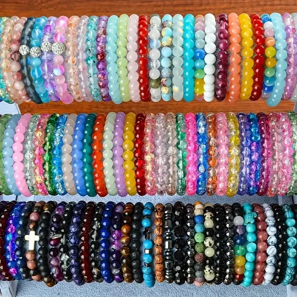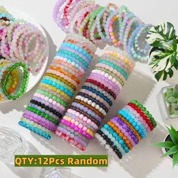 12Pcs Boho-Chic Handcrafted Bead Bracelet Set - Colorful Crackled Glass Beads, Ideal For Casual Attire & Vacation - Perfect Gift For Women, Friends & Family Random