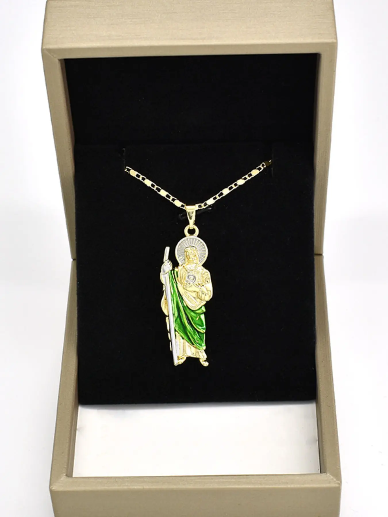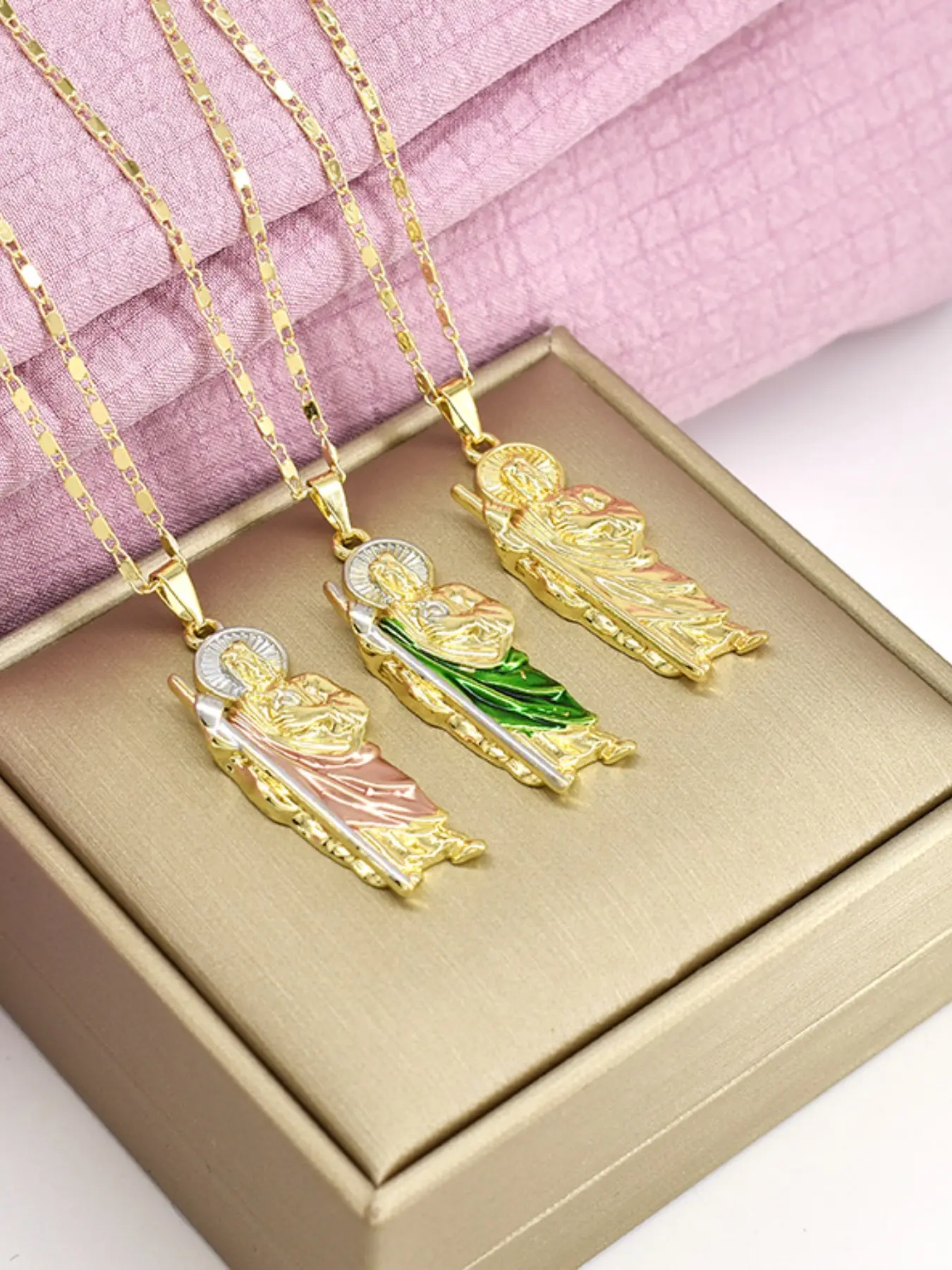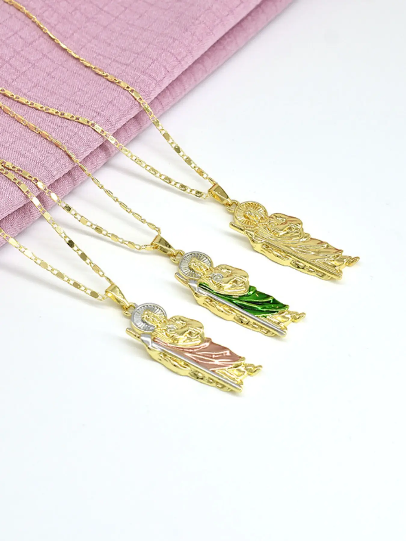 【Saint Jude Pendant】: Features a copper-plated 14k gold Saint Jude pendant, symbolizing blessings and prayers.