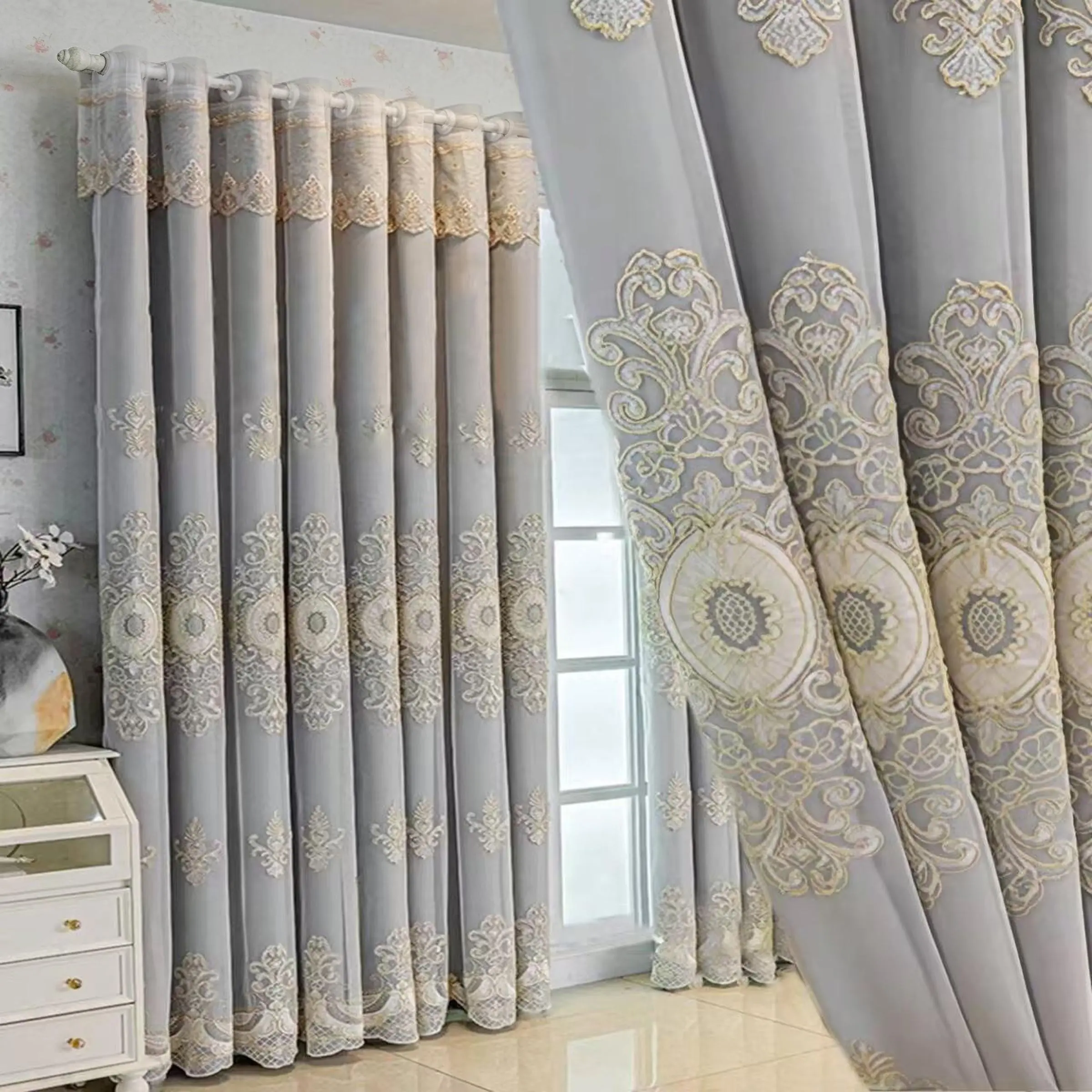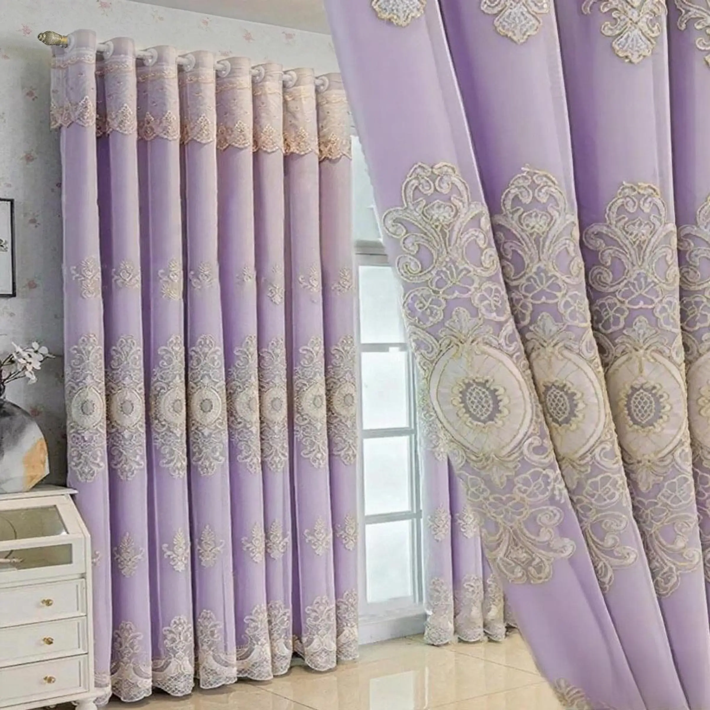 1pc European Luxury Double Layer Sheer Curtain, Princess Style, Light Blocking, Suitable for Kids Room, Living Room, Bedroom