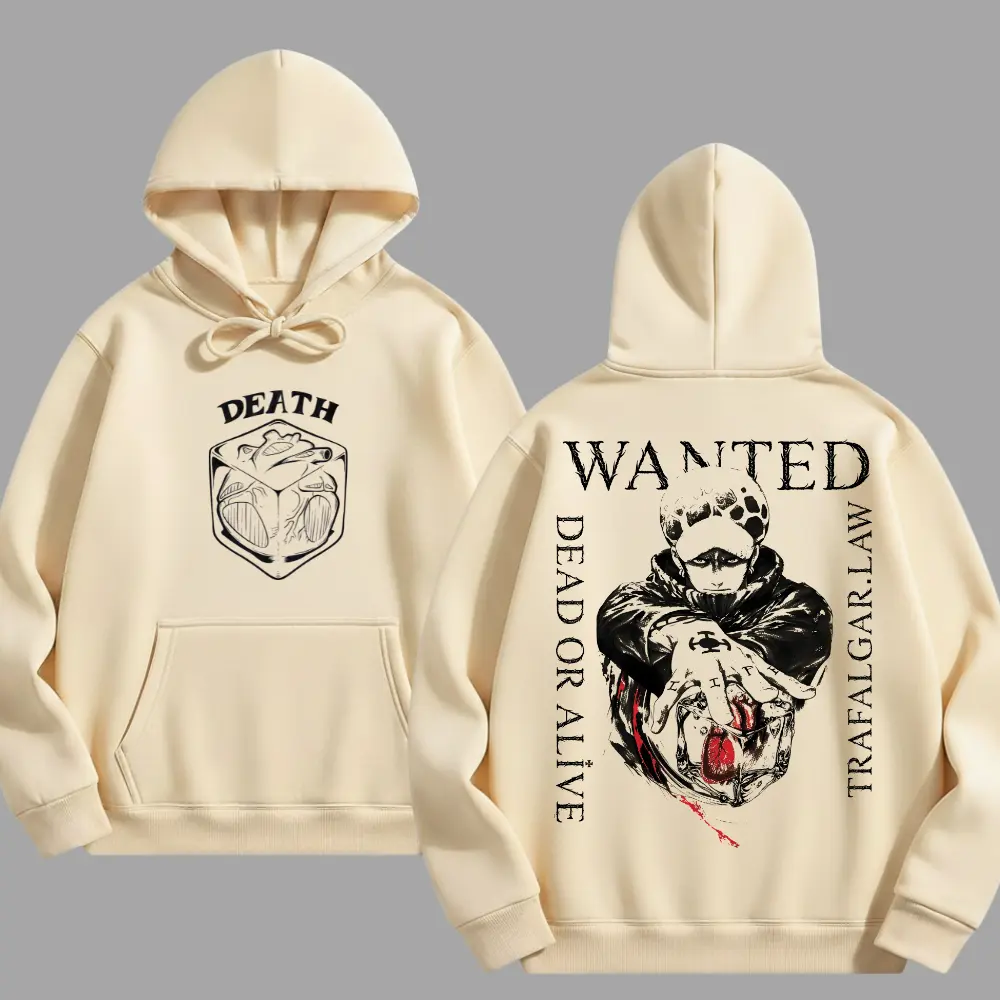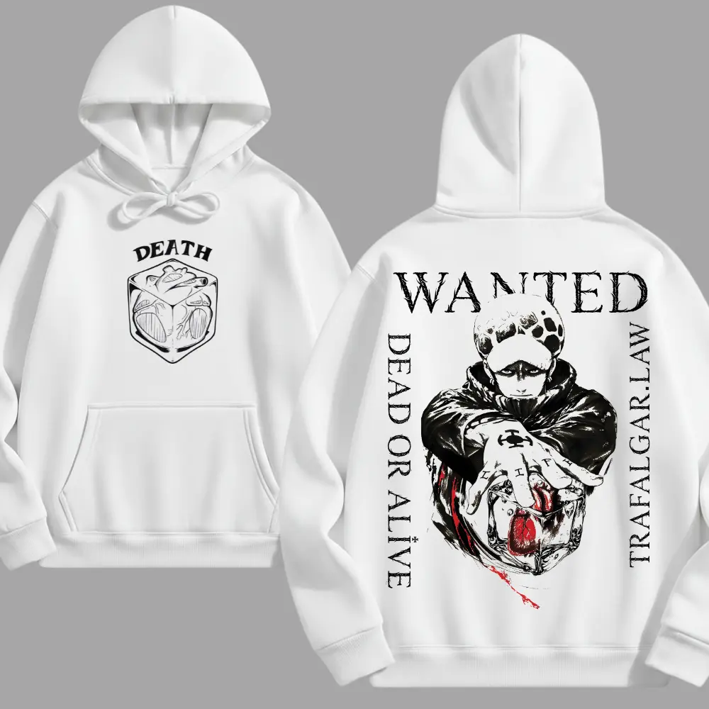 Wanted Death Surgeon Anime Hoodie, Dark Bounty Hunter Graphic Hoodie, Washed Vintage Streetwear Hoodie, Y2K Japanese Manga Style, Heart Power Aesthetic- Nice