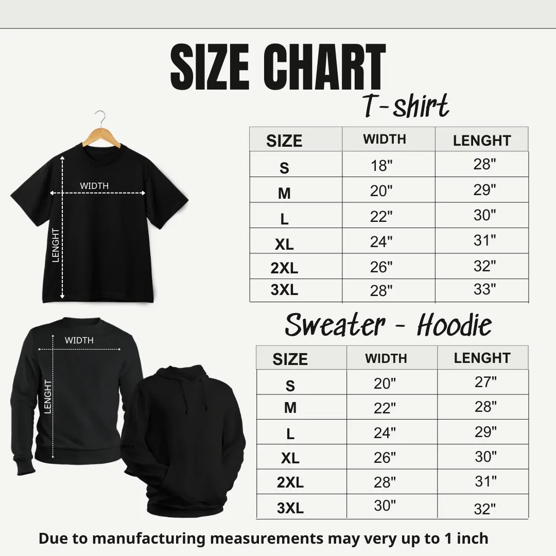Since all of our shirts are printed to order, we do not accept returns or exchanges due to size. Please ensure you choose the correct size by following our measuring tips. However, if there are any issues with your shirt, please message us, and we will gladly assist in resolving the problem.