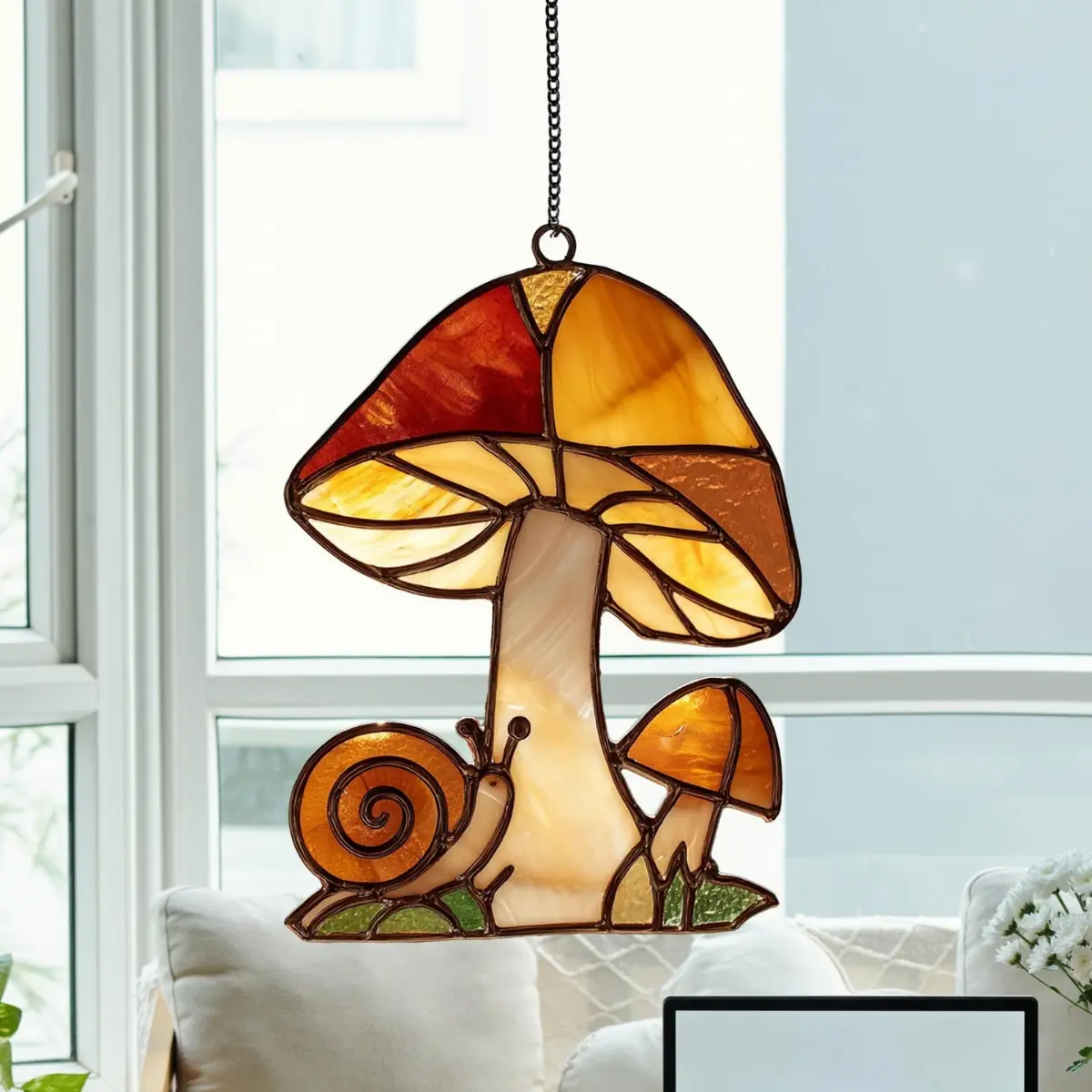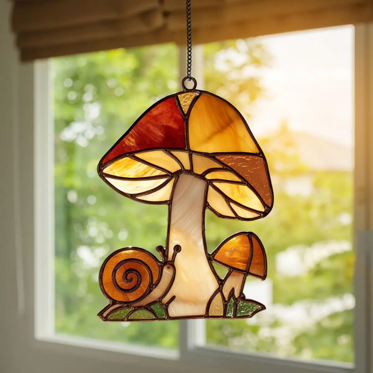 5. Mushrooms and snail acrylic suncatcher, cozy cottagecore window decor
