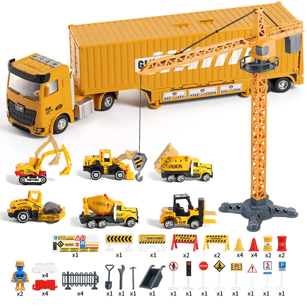 Alloy Construction Trucks Vehicle Toys for Kids Sounds Take Apart Container Crane,Excavator Trucks,Cement Mixer Toy Model Engineering Vehicle