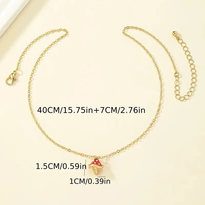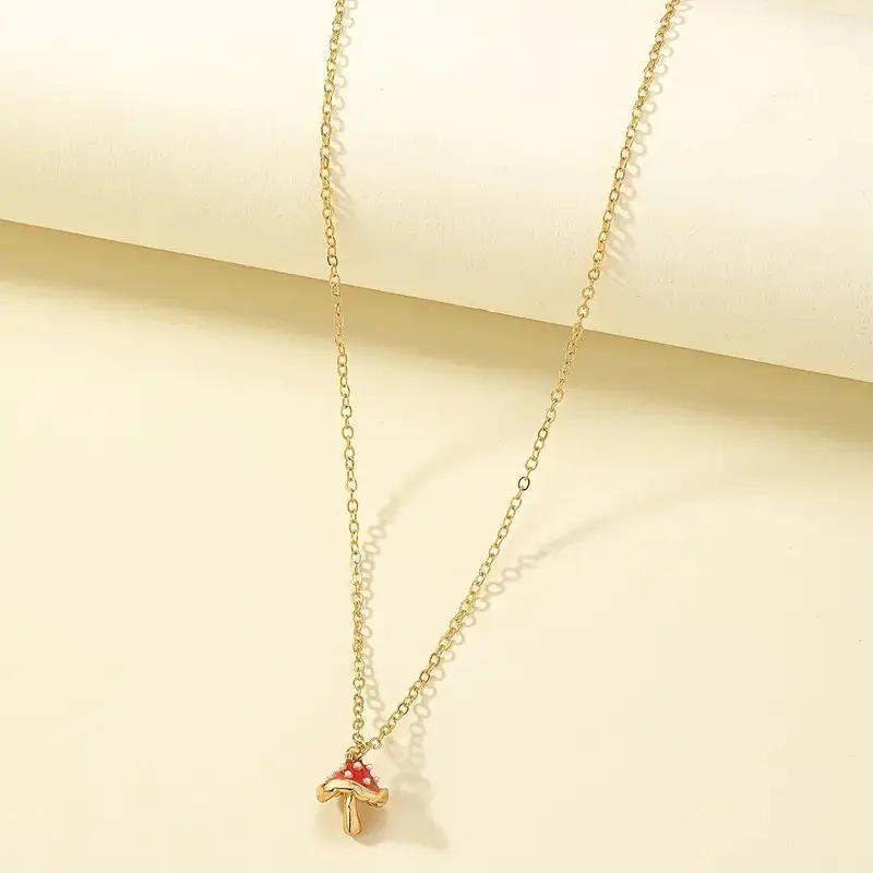 Creative golden mushroom-shaped wish necklace, fashionable, exquisite, personalized, and versatile accessory