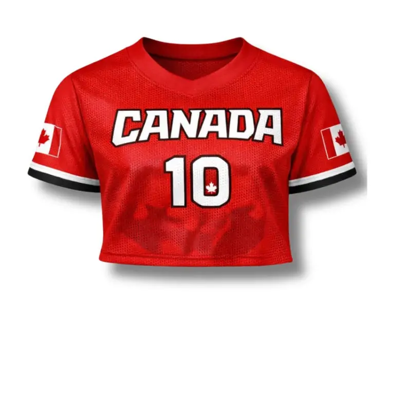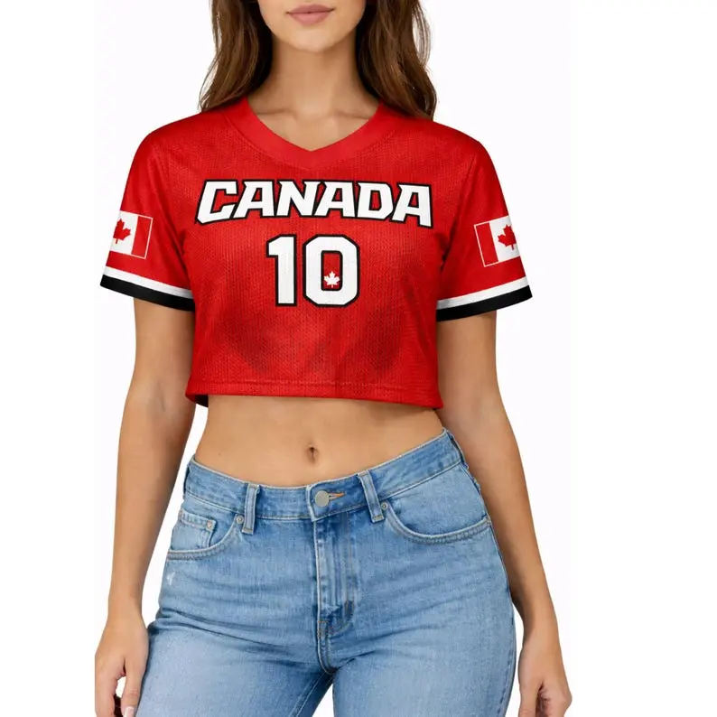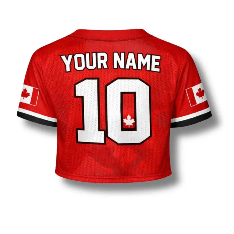 Show your America pride with this stylish Canada Crop Top Baseball Jersey. Designed with a modern cropped fit and sporty baseball style, it's perfect for game days, concerts, or everyday wear. A great Canada football gift for fans who love bold style and cultural pride