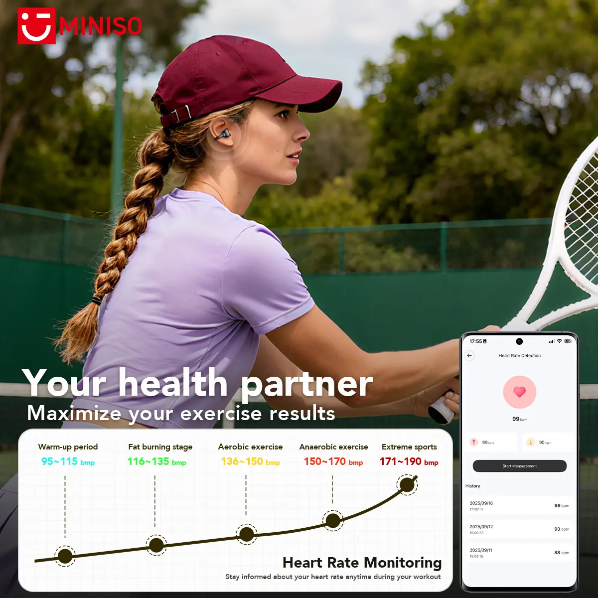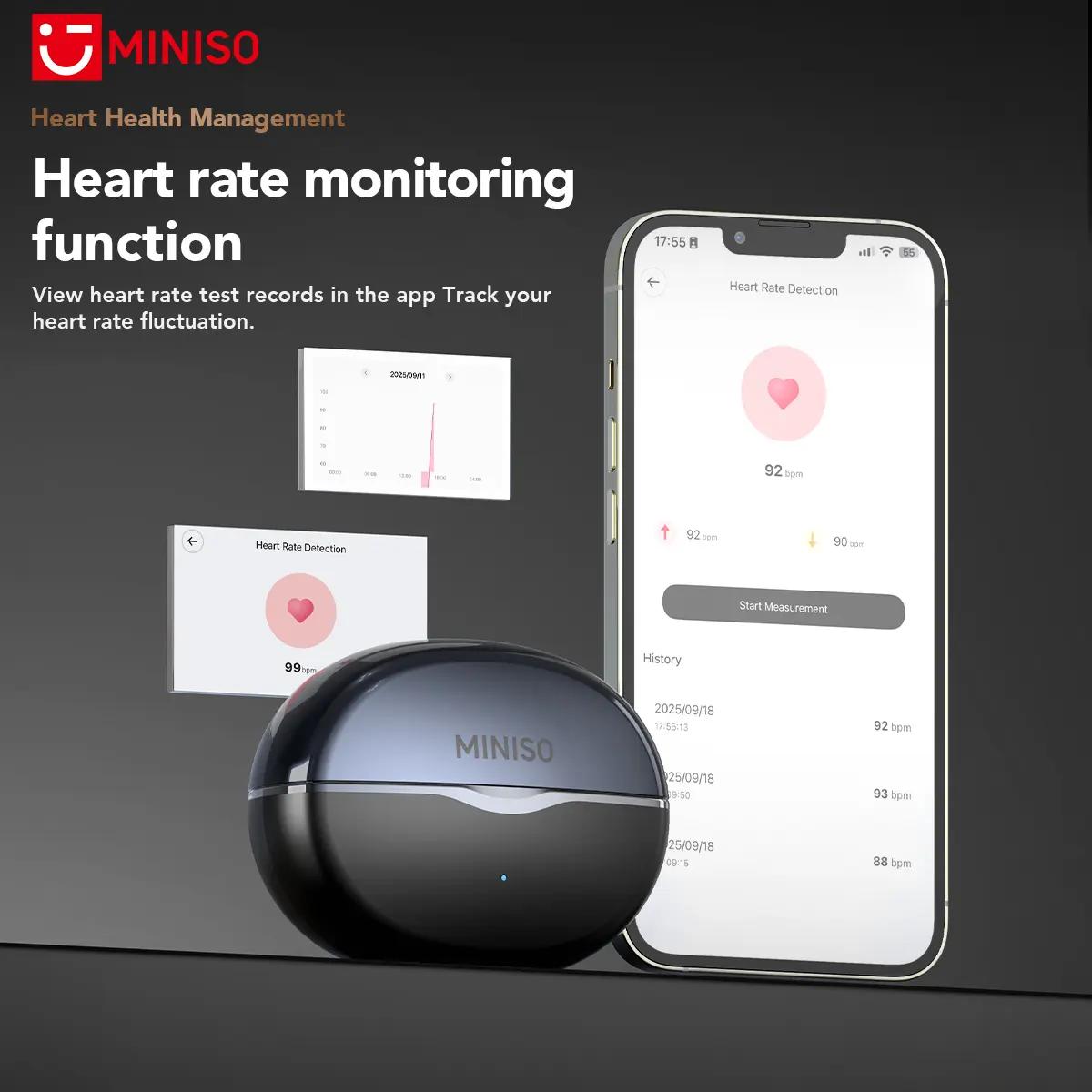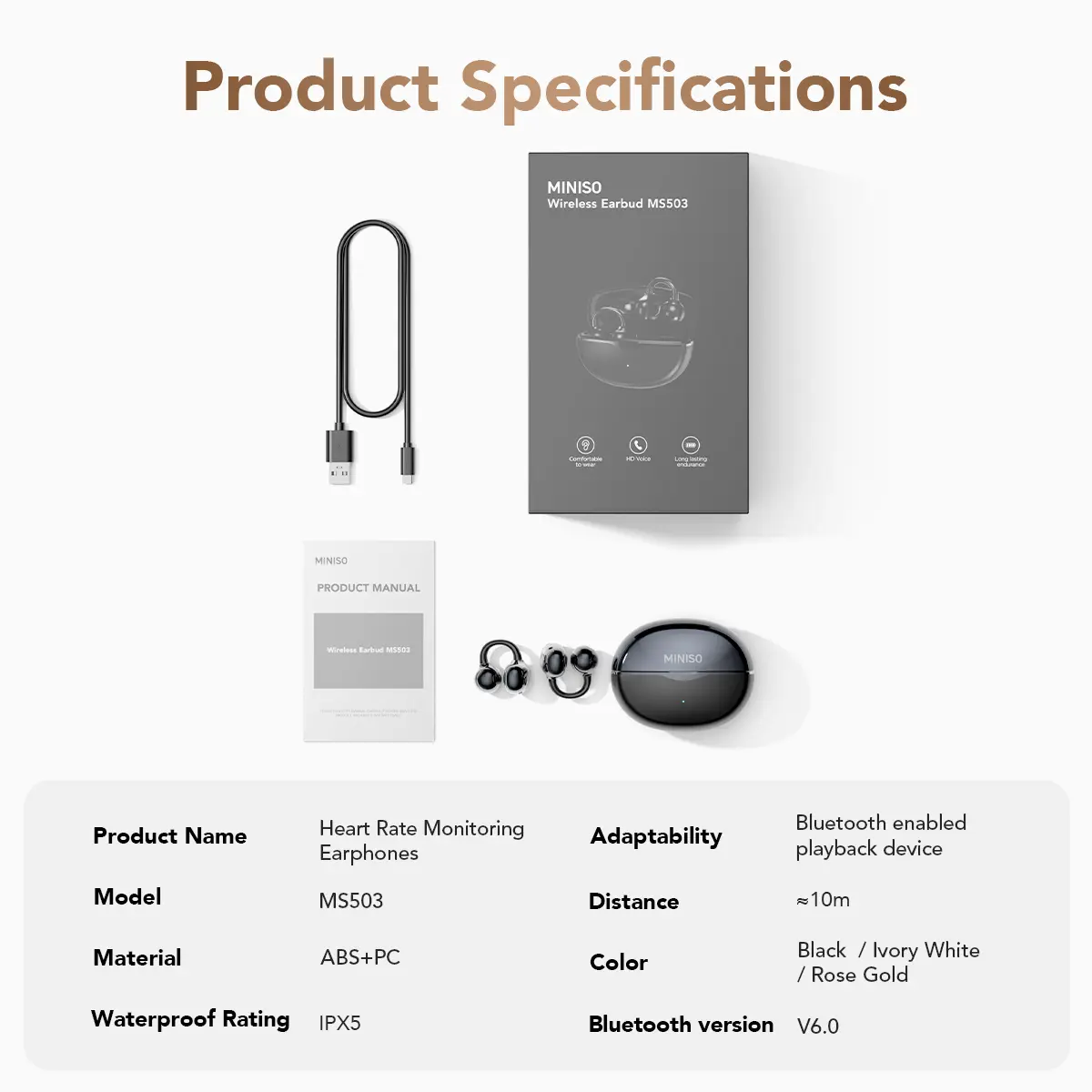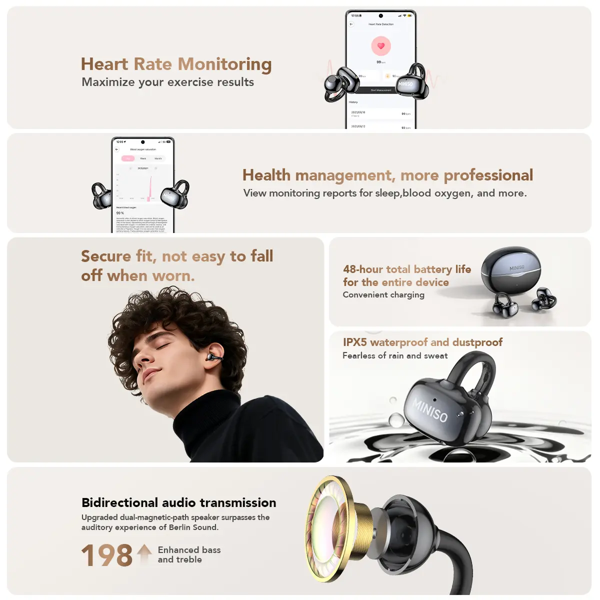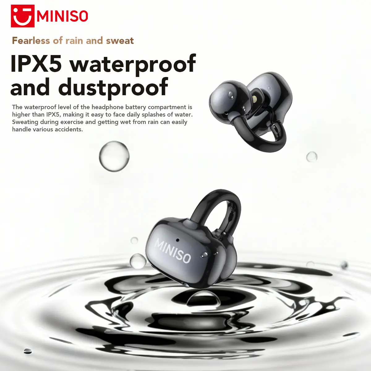 MINISO Clip On Earbuds Wireless Headphones with Bluetooth 6.0 Earphones, Stable Connection & Low Power Use, DT6.0 Pulse Directional Tech, 360° ACS Panoramic Sound, IPX5 Waterproof Audio Earbuds for Music & Calls, Comfortable for Sports