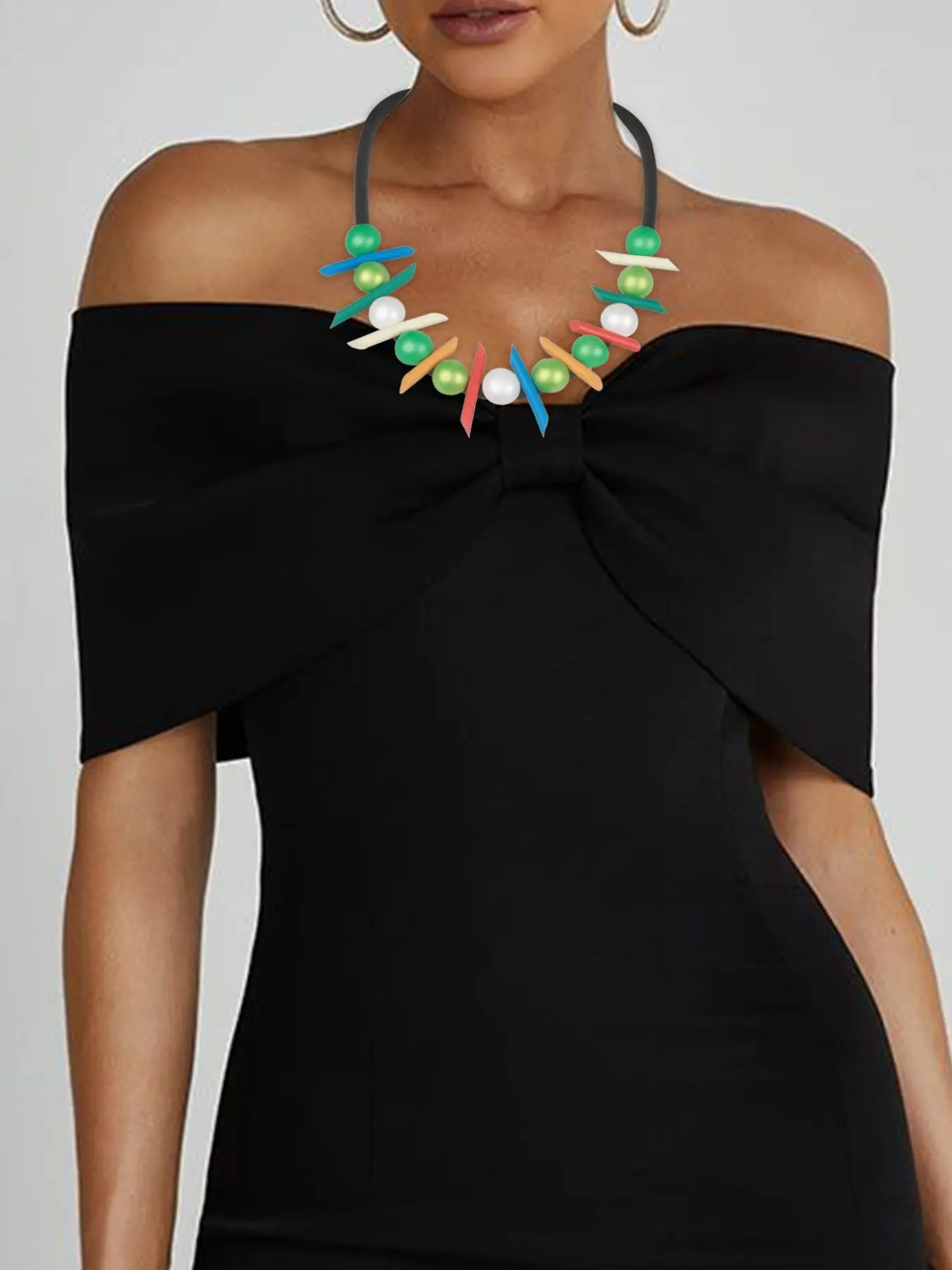 Boho Style Geometric Pendant Necklace, Colorblock Design, Fashionable Jewelry for Daily Wear, Perfect for Dates and Vacations, Women's Accessory