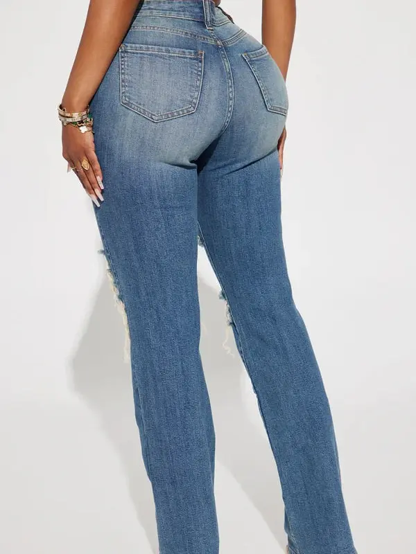 Topanga 90's Ripped Straight Leg Jeans - Medium Wash
