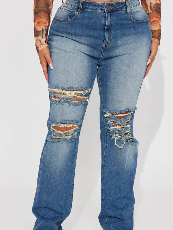 Tough Love Baggy Ripped Straight Leg Jean - Medium Wash