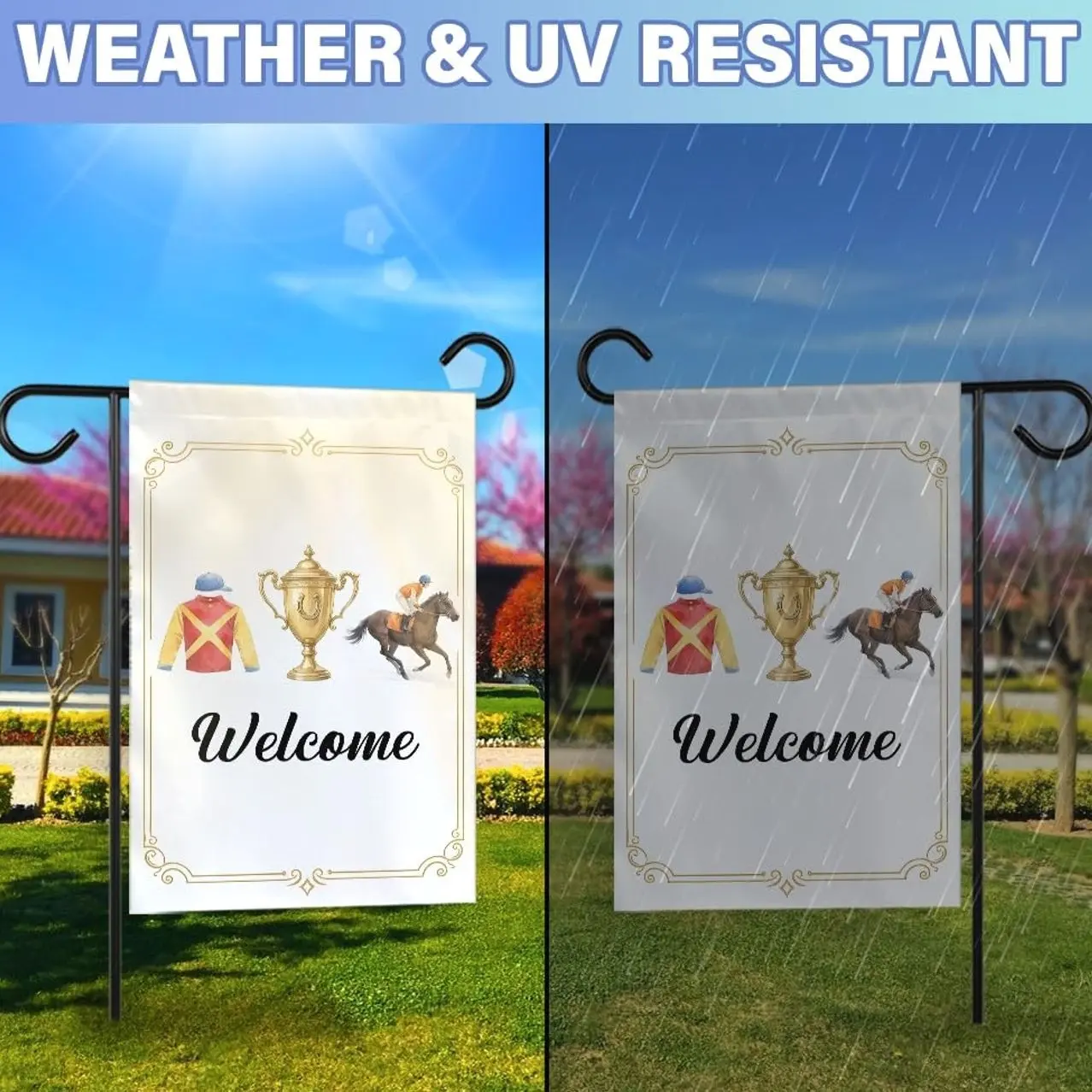 Welcome Garden Derby Flag, Horse Racing Porch & Lawn Decor, Outdoor Yard Sign for House Decoration.