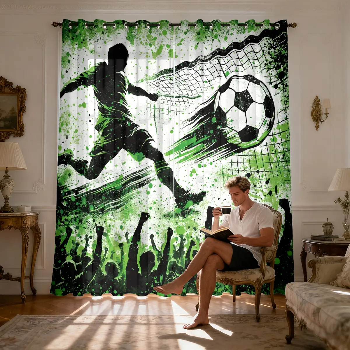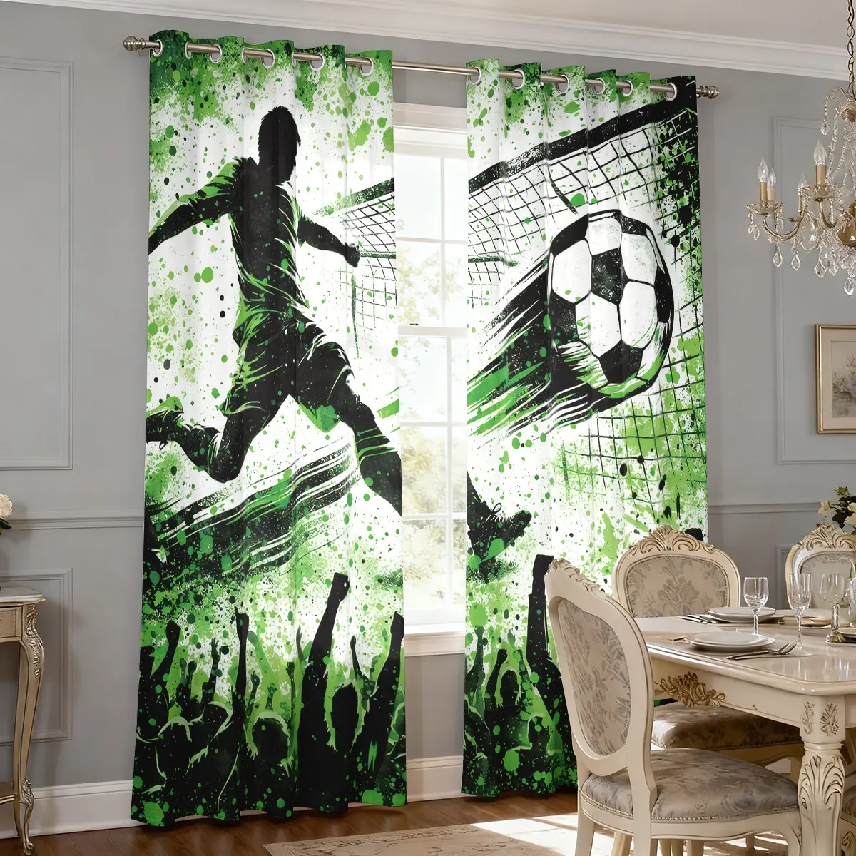 5. Football Pattern Design Light Filtering Curtain Sheer Curtains 63 Inch Length for Living Room, Semi-Transparent Sunshade Drapes,Room Divider for Bedroom Dining Room