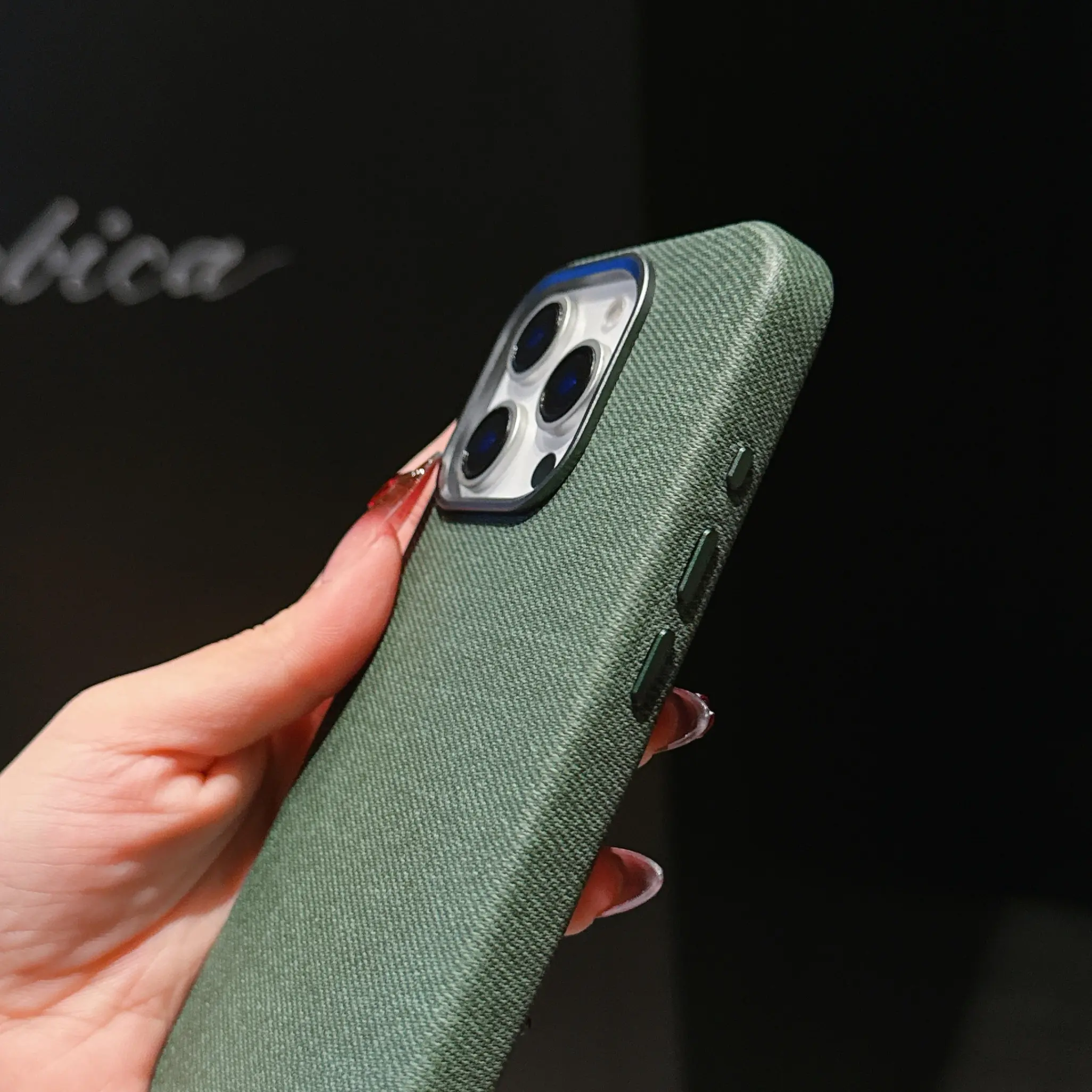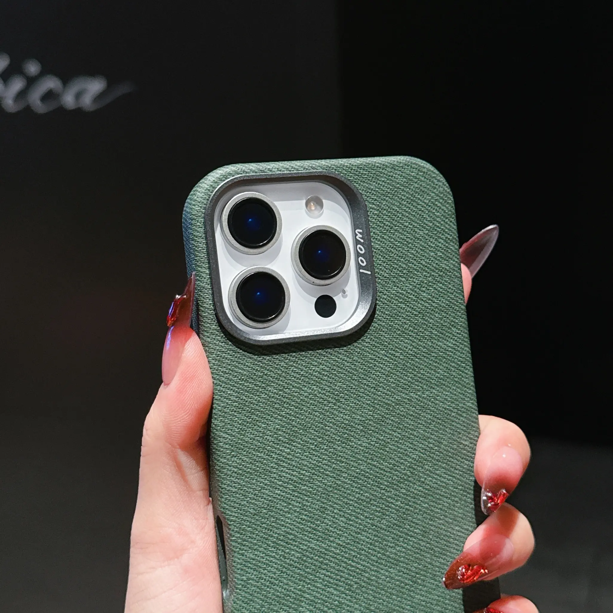 Luxury Denim Texture Leather Case with Magnetic for iPhone 16 Pro Max 15 Pro, Anti-Slip Slim Shockproof Protective Cover for Men Women