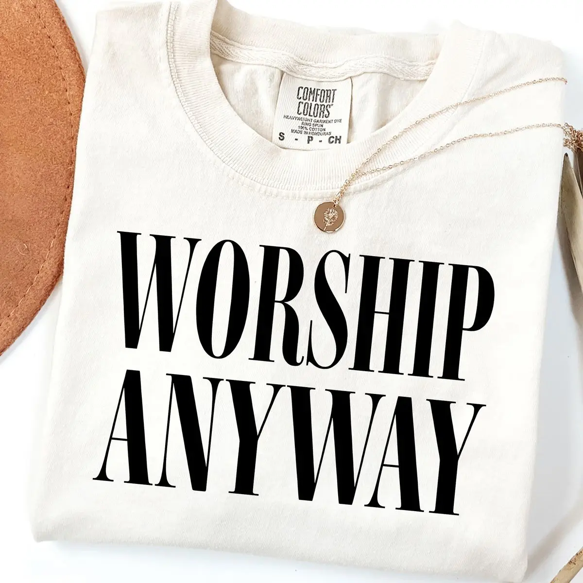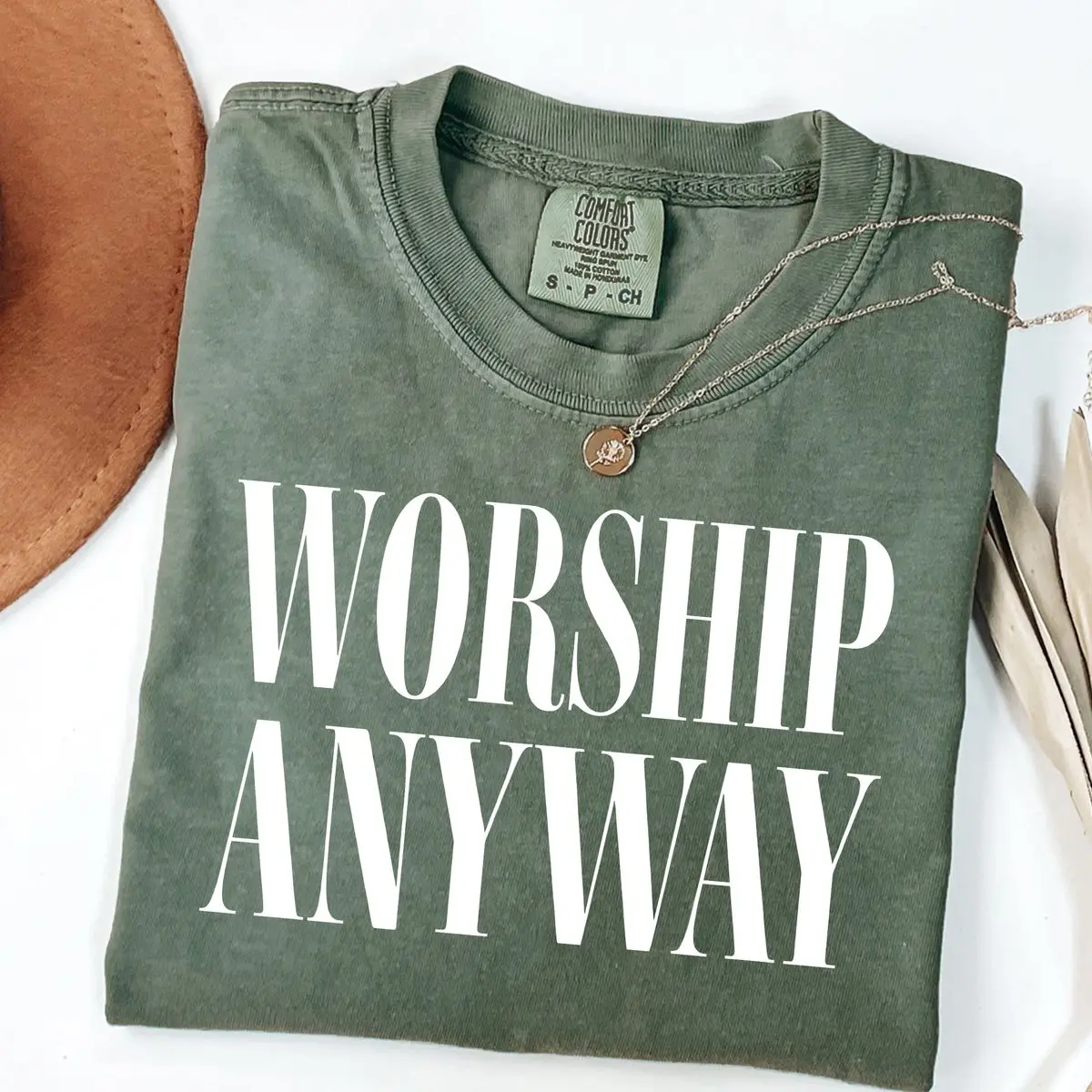 Comfort Colors Worship Anyway T Shirt, Faith Inspired Tee, Christian Religious T Shirt, Unisex Cotton Casual Graphic T Shirts, Unisex Casual Graphic T-Shirts