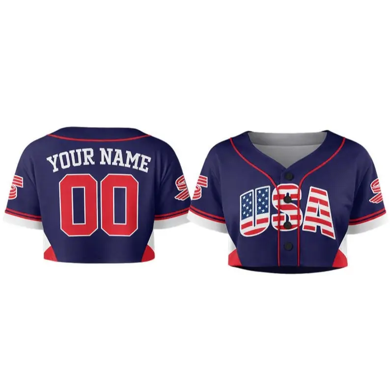 Personalized Jersey USA Croptop Baseball , Custom Name + Number Shirt