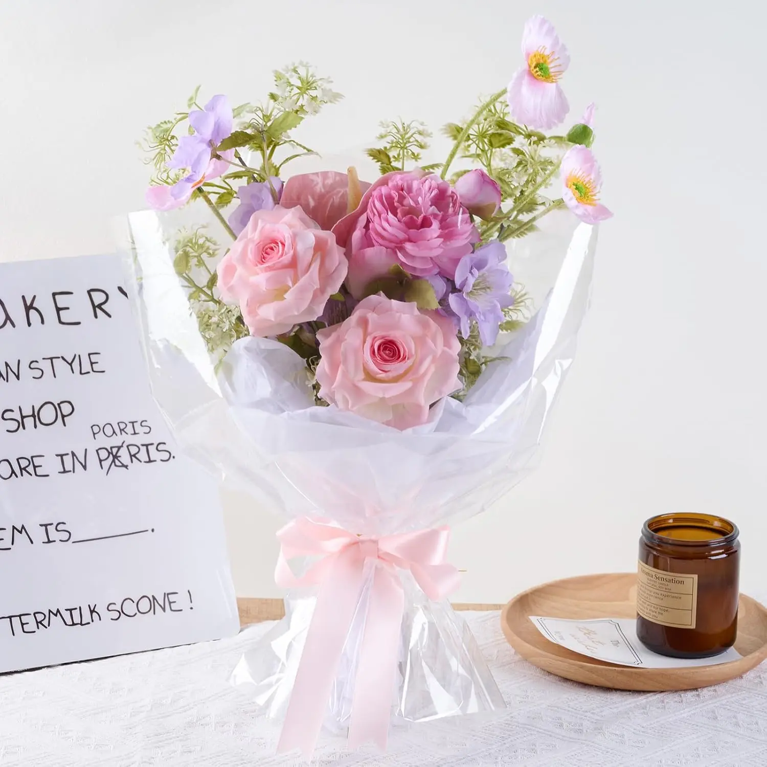 ·Premium Materials: These clear cellophane wrap rolls are made of OPP plastic with a thickness of 2.5 mil, food grade, strong and odorless, not easy to tear, stain-resistant and waterproof to protect your gift