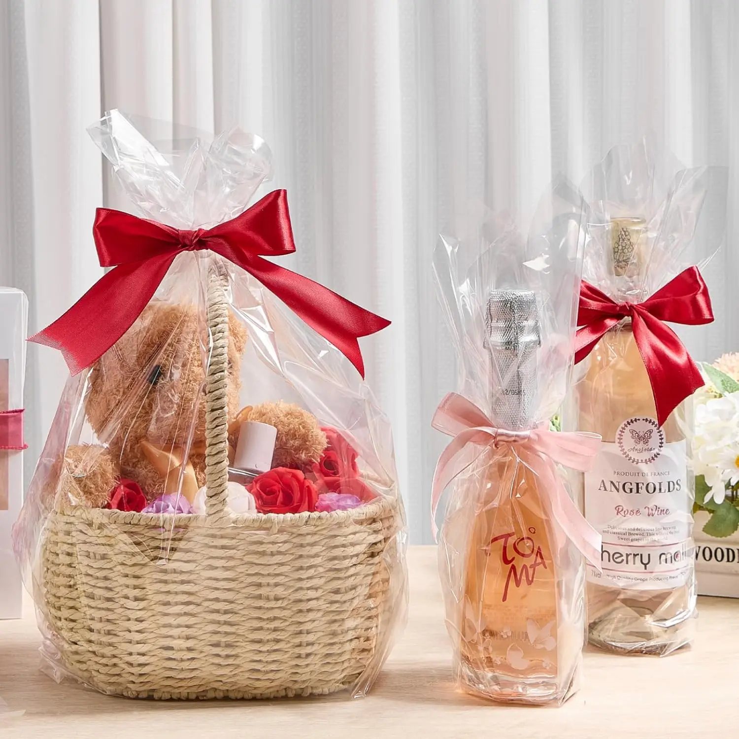 ·Wide Application: The clear plastic gift baskets wrap is an excellent choice for making the perfect gift for mother's day, parties, birthdays, bridal shower, wedding, holiday celebrations or small business
