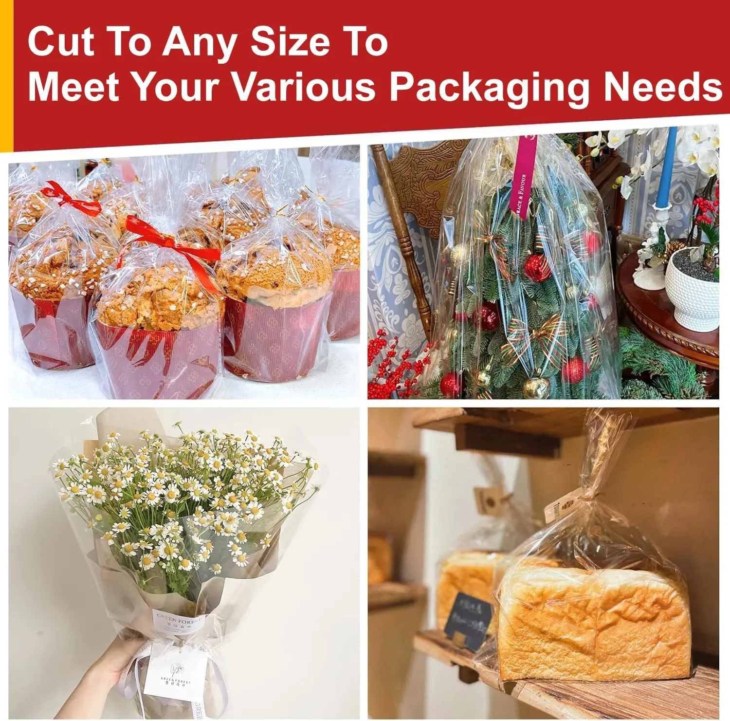 ·Meeting Your Various Needs: Our cellophane gift wrap can be unfolded and cut to your desired size, which not only suitable for large gift baskets, flower bouquets, wine bottles and toys, but also great for party favor treats like candies, popcorn, nuts, chocolates, homemade cookies