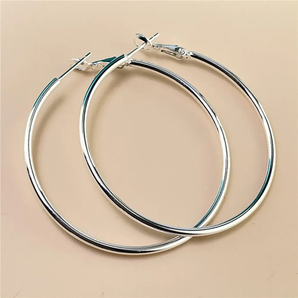 925 Sterling Silver Plated 50mm(1.96'') Large Circle Endless Hoop Earrings Big Round Huggie Hoops Statement Earring Minimalist Hooped Christmas Jewelry for Women