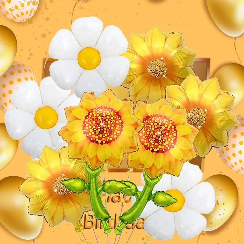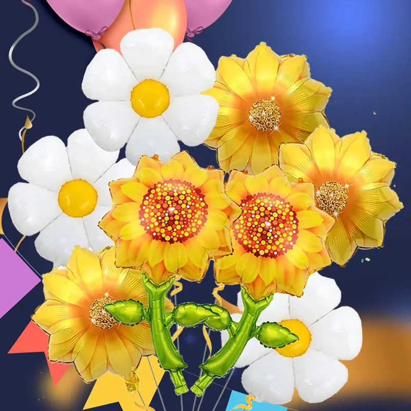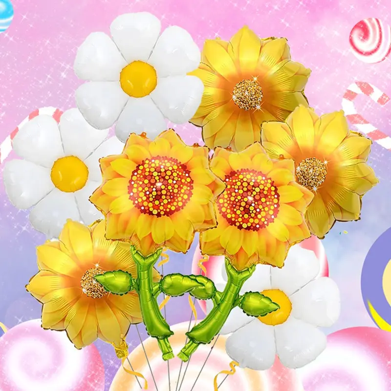 Natural Style Daisy Sunflower Foil Balloons, Multi Shape Kit for Wedding Decor, Anniversary Celebration, Festival & Party Supplies