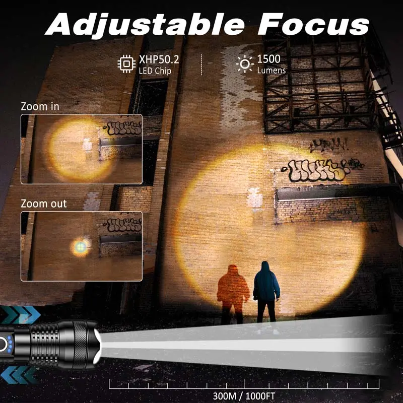 5 adjustable lighting modes meet all your needs in different scenarios.The flexible zoom design easily switches between spotlight and floodlight, making it more practical for both long-distance illumination and wide-area lighting.