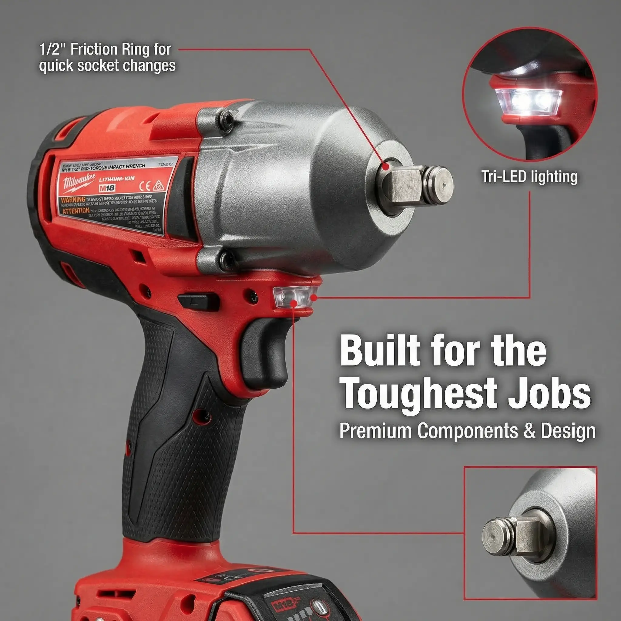 The Milwaukee M18 FMTIWF12 is a 18V 1/2 Inch Impact Wrench designed for automotive repair. It delivers a robust 900Nm torque, ensuring efficient and reliable performance. This tool is perfect for demanding tasks, providing the necessary power for tough jobs.