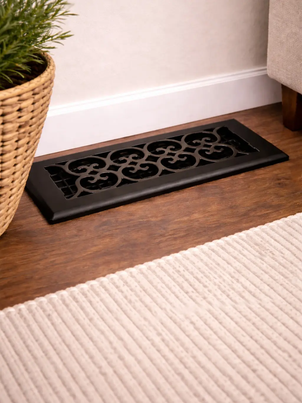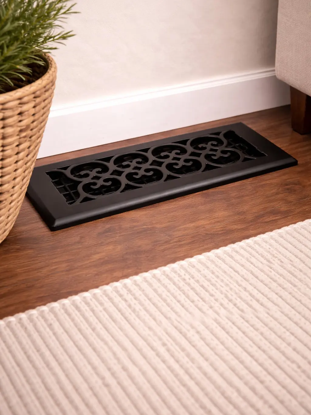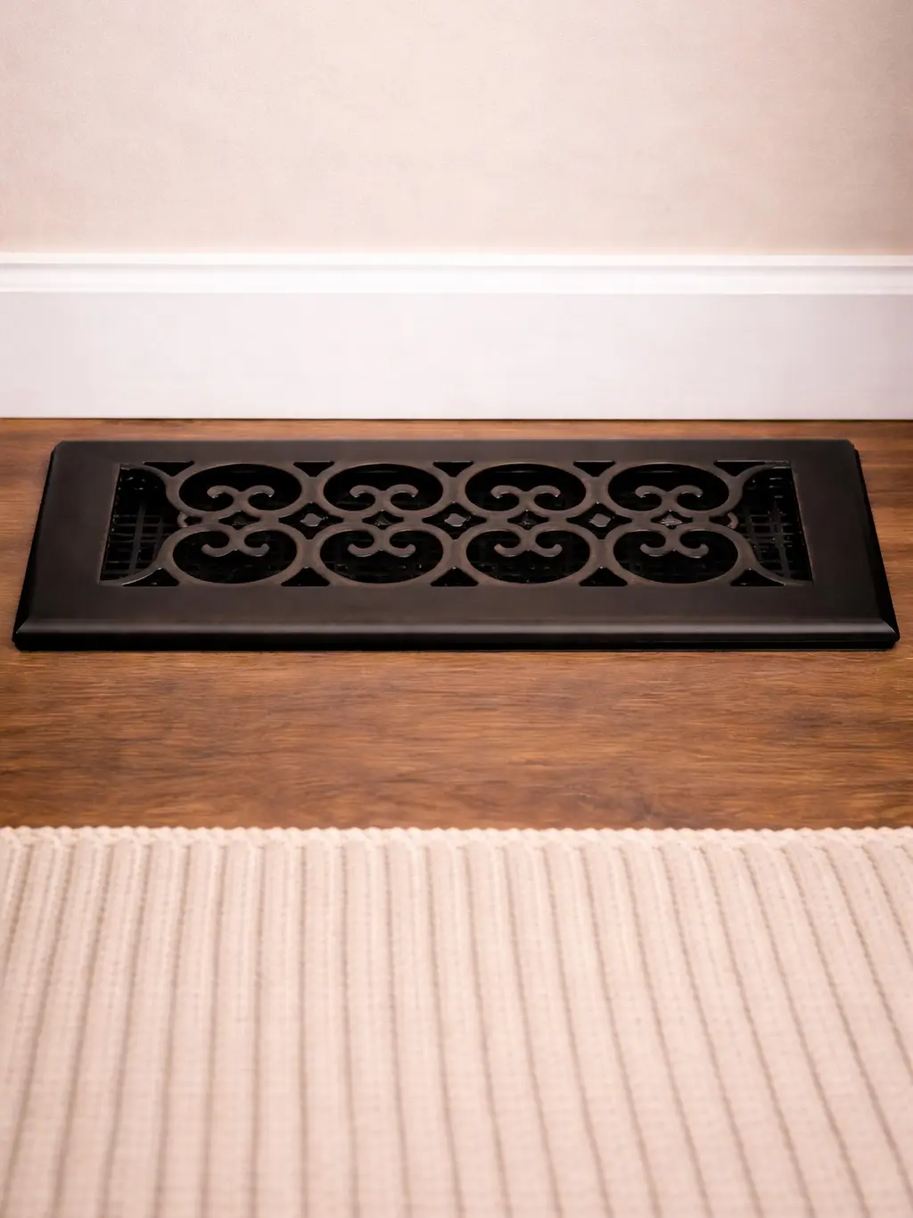Elevate your home’s airflow and style with the Decor Grates 4" x 10" Oriental Steel Plated Floor Register in a striking textured black finish. Designed to blend durability with decorative flair, this floor vent cover is perfect for both modern and classic interiors.