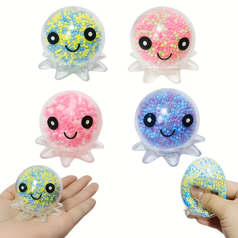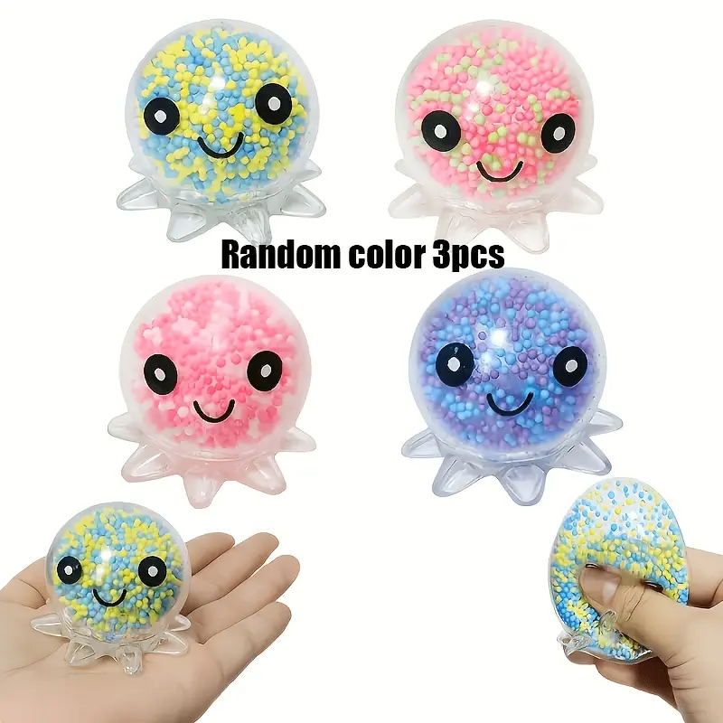 3 Cute Octopus Soft Stress Balls - Colorful Beads Suitable for Children and Adults, Christmas, Halloween, Thanksgiving Gifts, Toys | Colorful soft balls | Transparent ball, random color