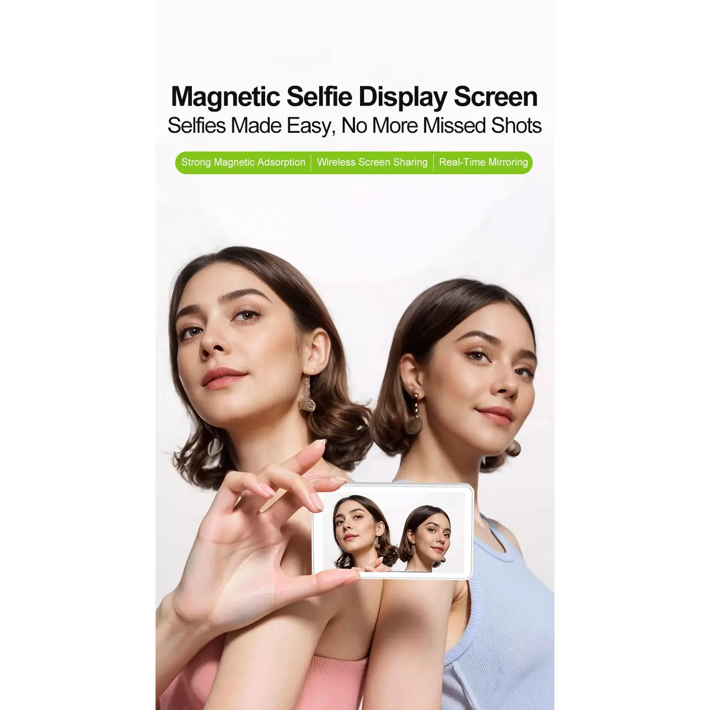 Magnetic Phone Monitor | Real-Time Selfie Screen for Rear Camera Vlogging & Live Streaming