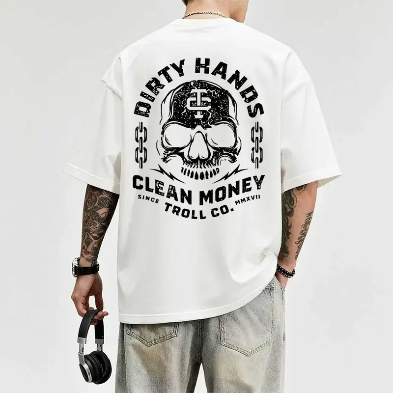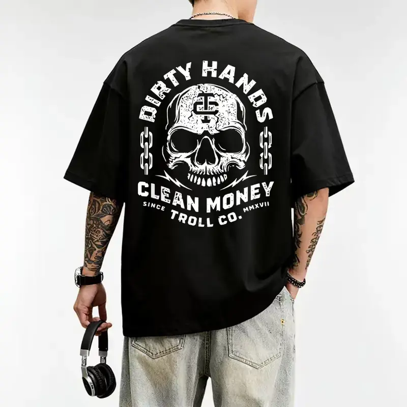 Dirty Hand Clean Money Golden Skull 2-Sided T-Shirt, Workwear Graphic Tee, Blue Collar Gifts, Men's Casual T-Shirt, For MenDirty Hand Clean Money Golden Skull 2-Sided T-Shirt, Workwear Graphic Tee, Blue Collar Gifts, Men's Casual T-Shirt, For Men
