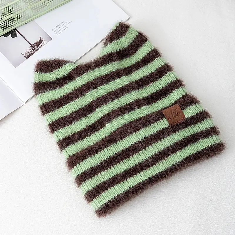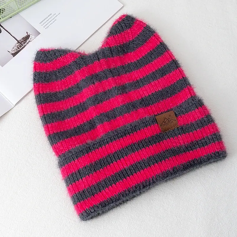 Striped Fuzzy Knit Beanie