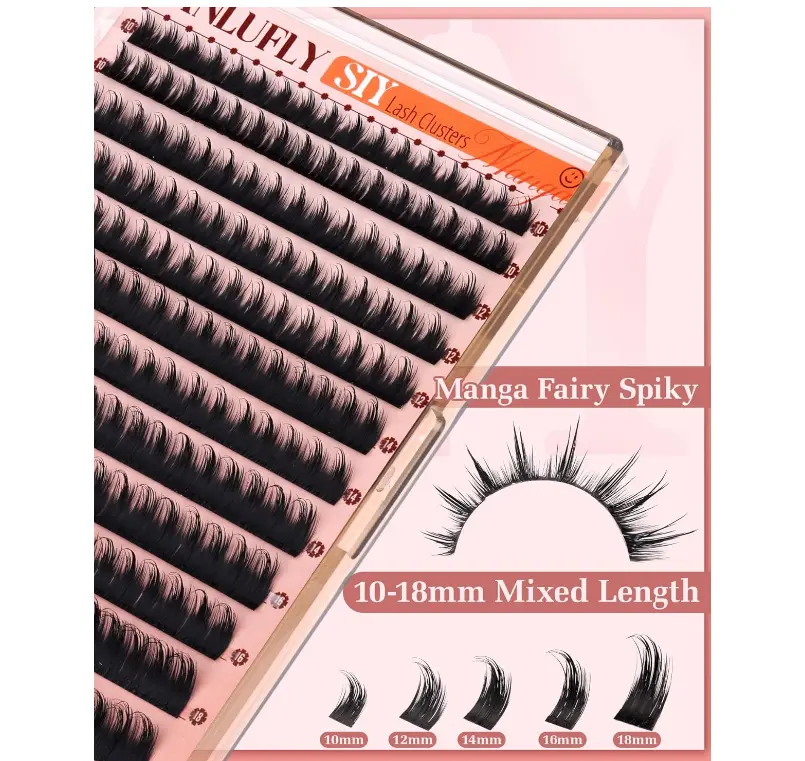 ·Manga Fairy Style: Spiky Anime-Inspired Lashes! Get anime-worthy eyes with our spiky cluster eyelash extensions! These manga lash clusters have tapered tips for depth, while the wispy fairy cluster lashes blend seamlessly with natural lashes. The combo creates a magical, ethereal look—ideal for daily, cosplay, themed events, or anyone loving bold eyelash clusters.
