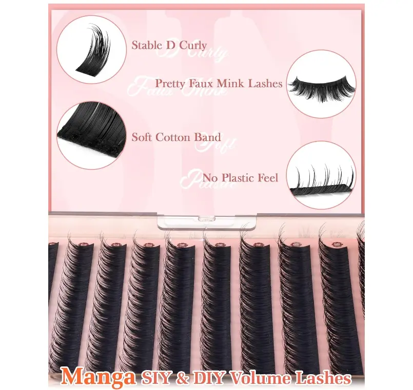 ·Soft Band: Lightweight & Gentle All-Day Wear! Our SIY lash clusters feature ultra-thin, flexible bands that fit your eye curve. Unlike stiff options, these eyelash extensions cause no irritation or heaviness—even after hours. Kind to sensitive eyes, the soft band won’t pull natural lashes, making these manga lash extension comfortable for all-day/night wear.