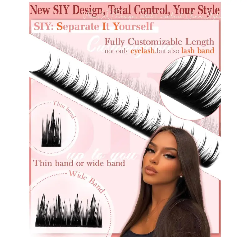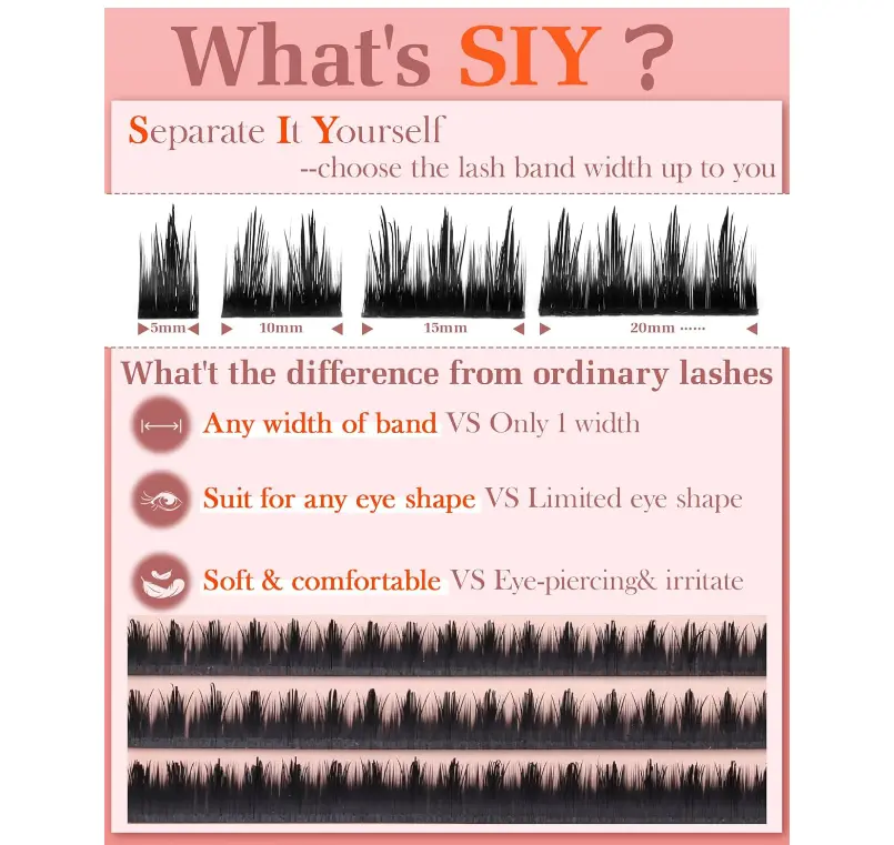 ·SIY & DIY: Customizable At-Home Lash Clusters Skip salons! Our SIY design lets you pick band widths for your eye shape—perfect for crafting your ideal diy individual lashes look. These eyelash clusters are easy to apply: trim if needed, add glue, and place the lash clusters along your line. No pro skills required—get tailored lash extension vibes for daily or party use in minutes.