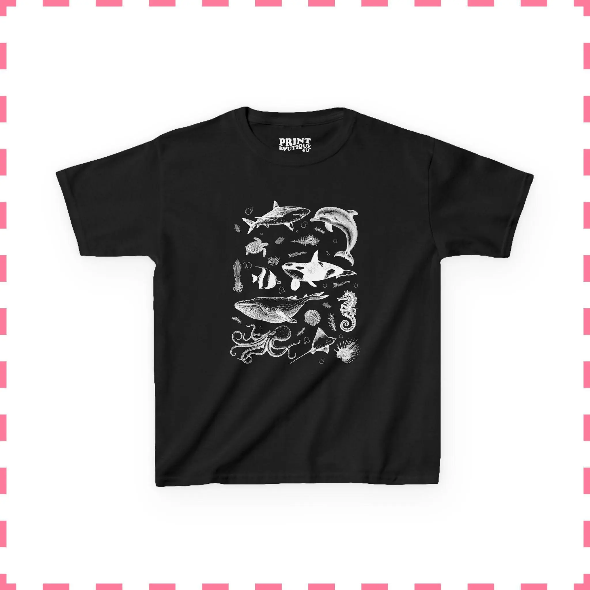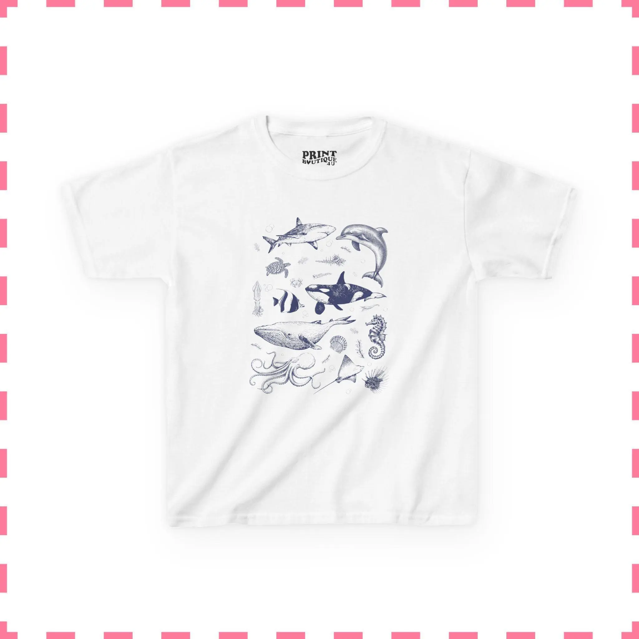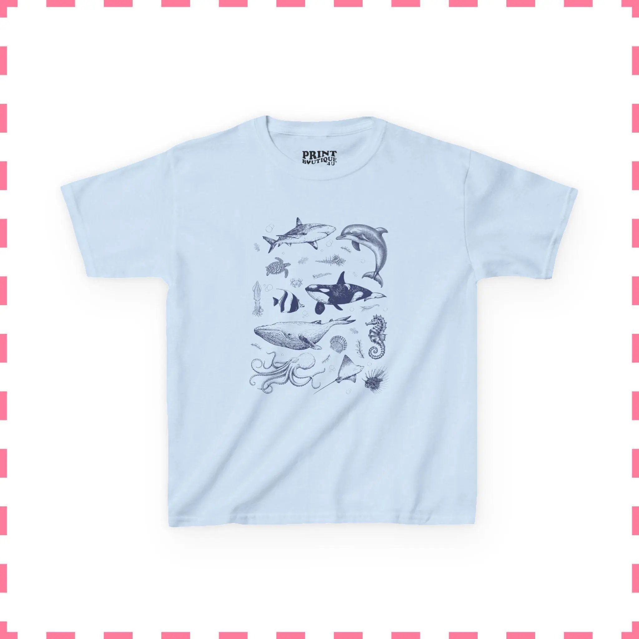 Sea Animals Baby Tee Ocean Pattern Shirt Cute Marine Life Tee Y2k Aesthetic Baby Tee Whale Dolphin Graphic Tee Aquarium Gift Shirt