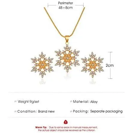 Snowflake necklace and earring set: Snowflake is the most beautiful element in winter and very popular at Christmas. This jewelry set is well-built, finely-designed, and delicate, matching all your clothes nicely. Size: 62cm+5cm, weight: 20g. Material: Alloy & rhinestone. Nickel, lead, and cadmium-free. Hypoallergenic, lightweight, and comfortable to wear.